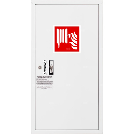 - szafka hydrantowa OCYNKOWANA wykonana z blachy stalowej ocynkowanej elektrolitycznie malowanej farbą proszkową poliestrową fasadową typu Facade w kolorze czerwonym (RAL 3000) lub białym (RAL 9003), drzwi pełne; dzięki zastosowaniu zawiasu krytego drzwi szafki można otworzyć o 180°