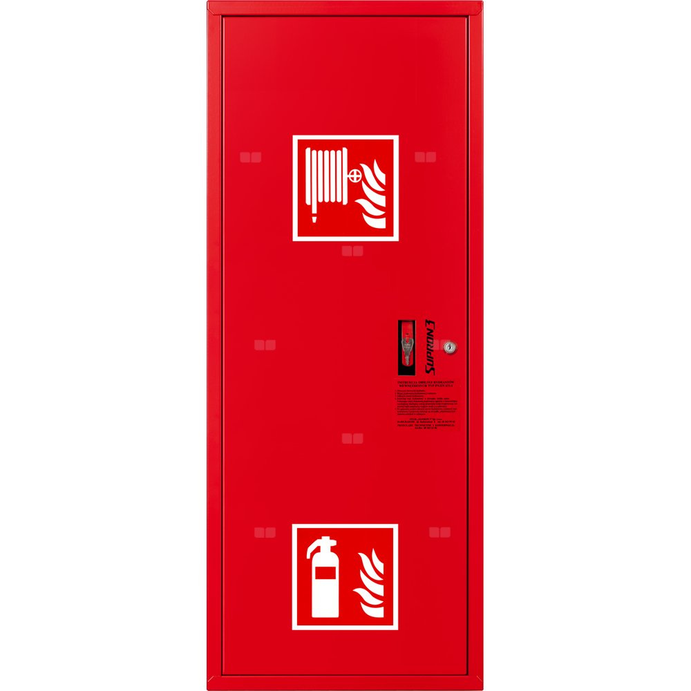 - szafka hydrantowa OCYNKOWANA wykonana z blachy stalowej ocynkowanej elektrolitycznie malowanej farbą proszkową poliestrową fasadową typu Facade w kolorze czerwonym (RAL 3000) lub białym (RAL 9003), drzwi pełne; dzięki zastosowaniu zawiasu krytego drzwi szafki można otworzyć o 180°