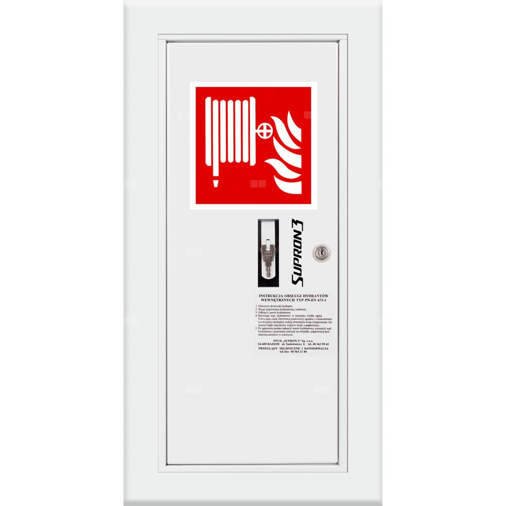 - szafka hydrantowa STANDARD wykonana z blachy czarnej malowanej farbą proszkową poliestrową fasadową typ Facade w kolorze czerwonym (RAL 3000) lub białym (RAL 9003), drzwi pełne; drzwi szafki można otworzyć o 180°