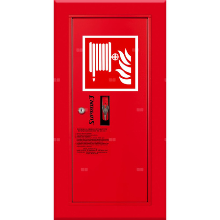 - szafka hydrantowa STANDARD wykonana z blachy czarnej malowanej farbą proszkową poliestrową fasadową typ Facade w kolorze czerwonym (RAL 3000) lub białym (RAL 9003), drzwi pełne; drzwi szafki można otworzyć o 180°