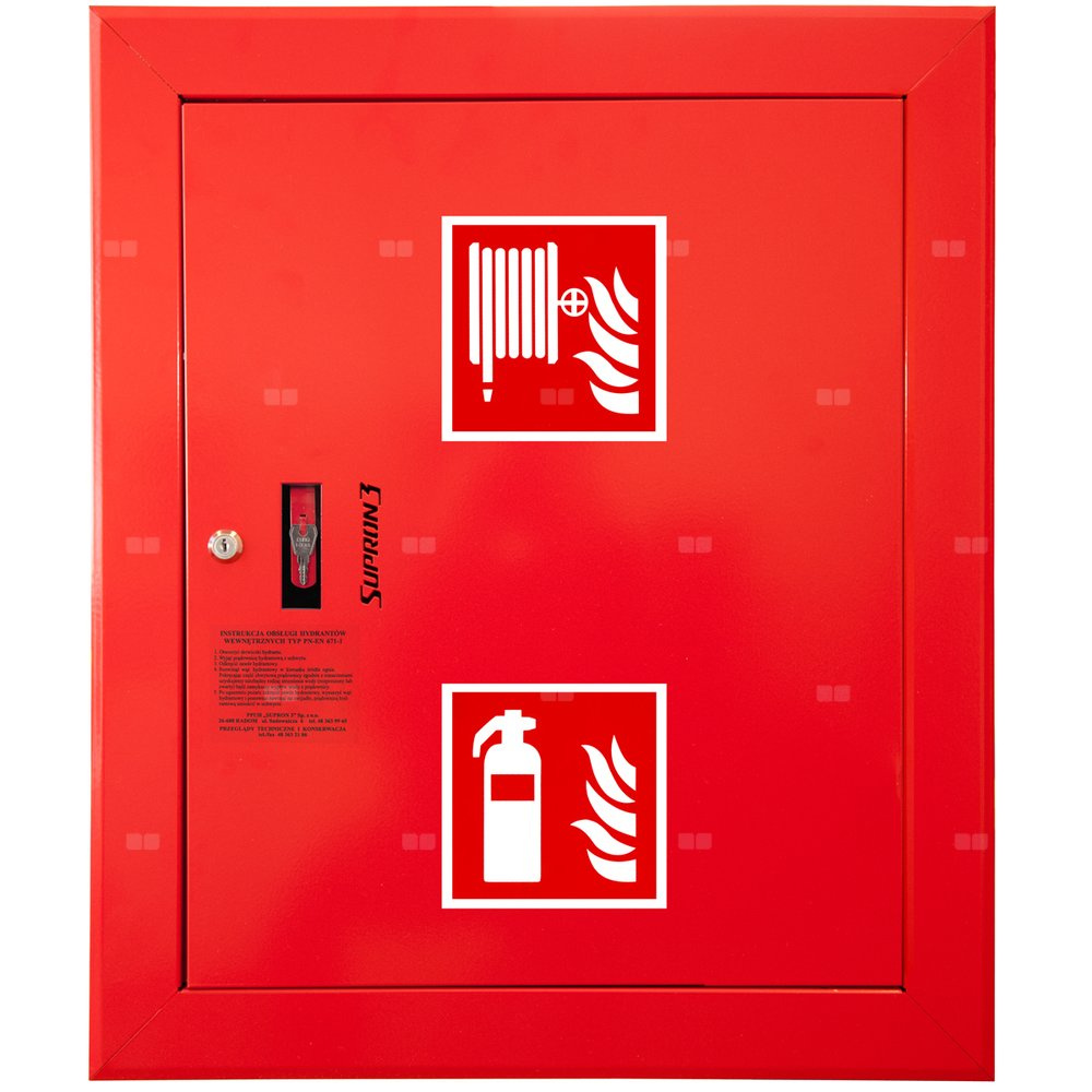 Hydrant DN52 wnękowy z koszem, 600x500x200mm, z miejscem na gaśnicę, wąż 20m, zamek patent, RAL 3000