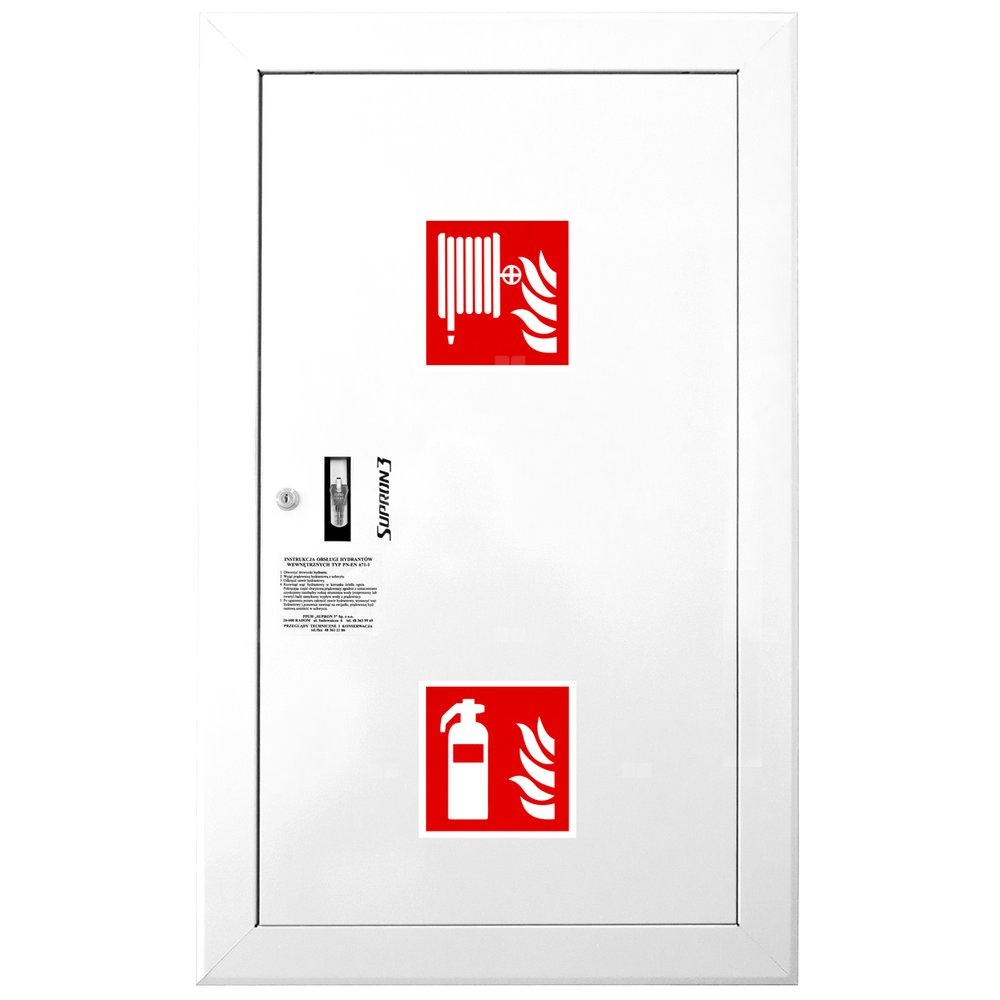 Hydrant DN52 wnękowy z koszem, 850x500x200mm, z miejscem na gaśnicę, wąż 2x20m, zamek patent, RAL 9003