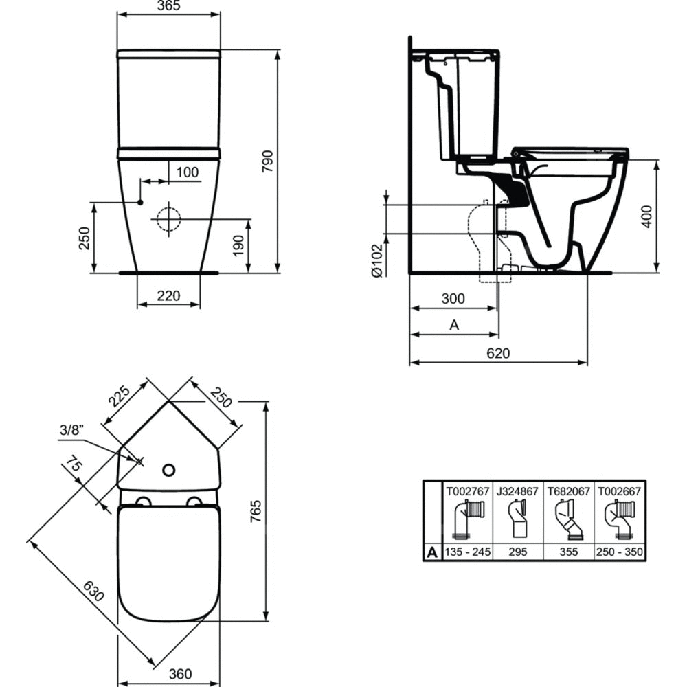 Zbiornik do WC Ideal Standard i.life S narożny o pojemności 4,5/3 l do kompletowania. Z dolnym dopływem.