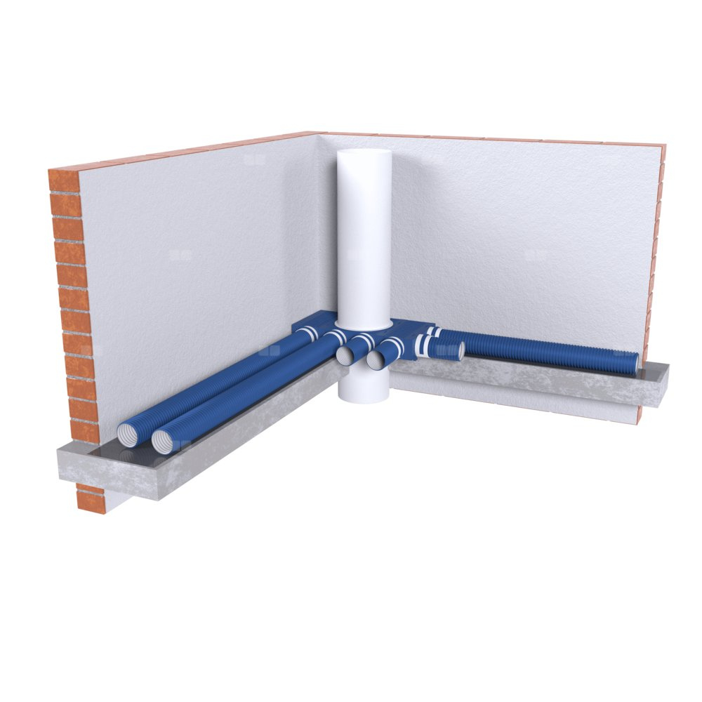 Moduł bazowy przelotowy (MPBVT+75) to nowa kształtka wchodząca w skład systemu VENTIFLEX PLUS, dzięki której można zbudować przelotowy rozdzielacz.