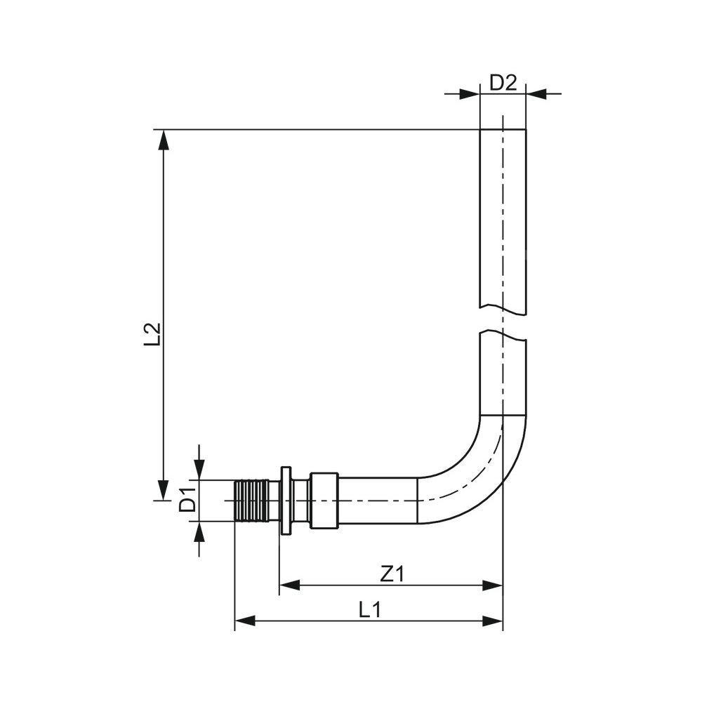 TECEflex kolano montażowe do przyłączy grzejnikowych 15 mm, niklowane do rur systemu TECEflex
