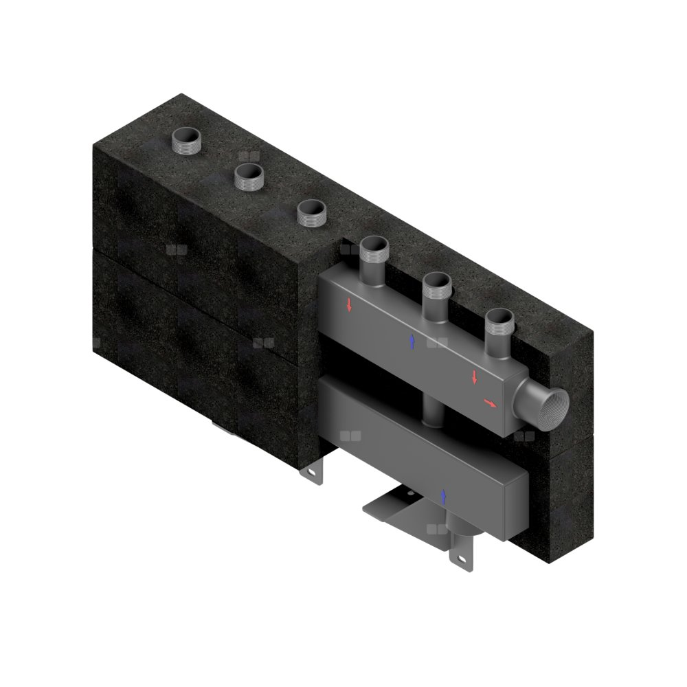 Dwukomorowy stalowy kolektor kaskadowy C 2 100 - DN 50  został stworzony w celu połączenia pomp ciepła w kaskadzie. Fabrycznie wyposażony jest w szczelnie dopasowaną izolację EPP oraz uchwyty naścienne. Kolektor stosowany może być do grzania jak i chłodzenia.