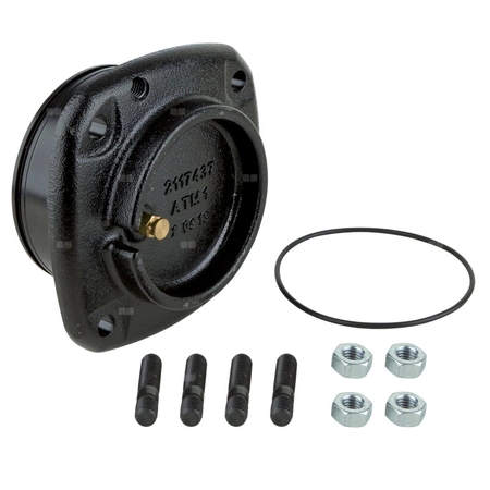 Pokrywa z kołnierzem do zamknięcia hydrauliki pompy po zdemontowaniu głowicy silnika Do montażu kołnierza zaślepiającego należy użyć śrub mocowania głowicy silnika.