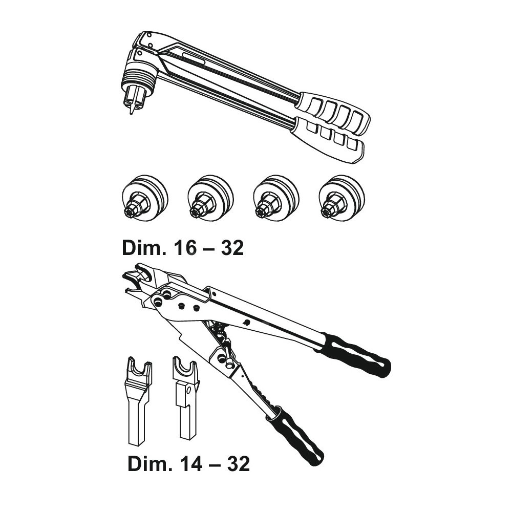 TECEflex komplet ręcznych narzędzi zaciskowych i kalibrujących w zakresie średnic 14-32 mm