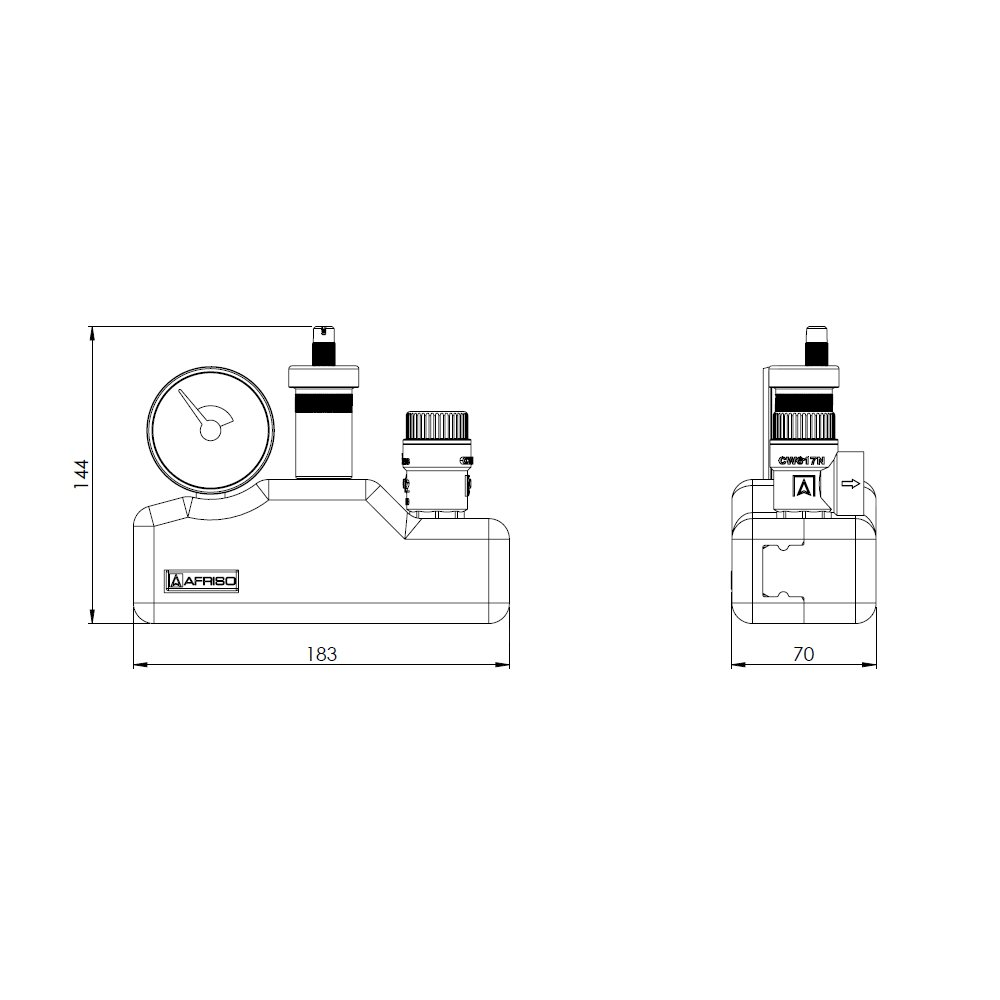 Manometr i odpowietrznik wyposażone w zawory montażowe.