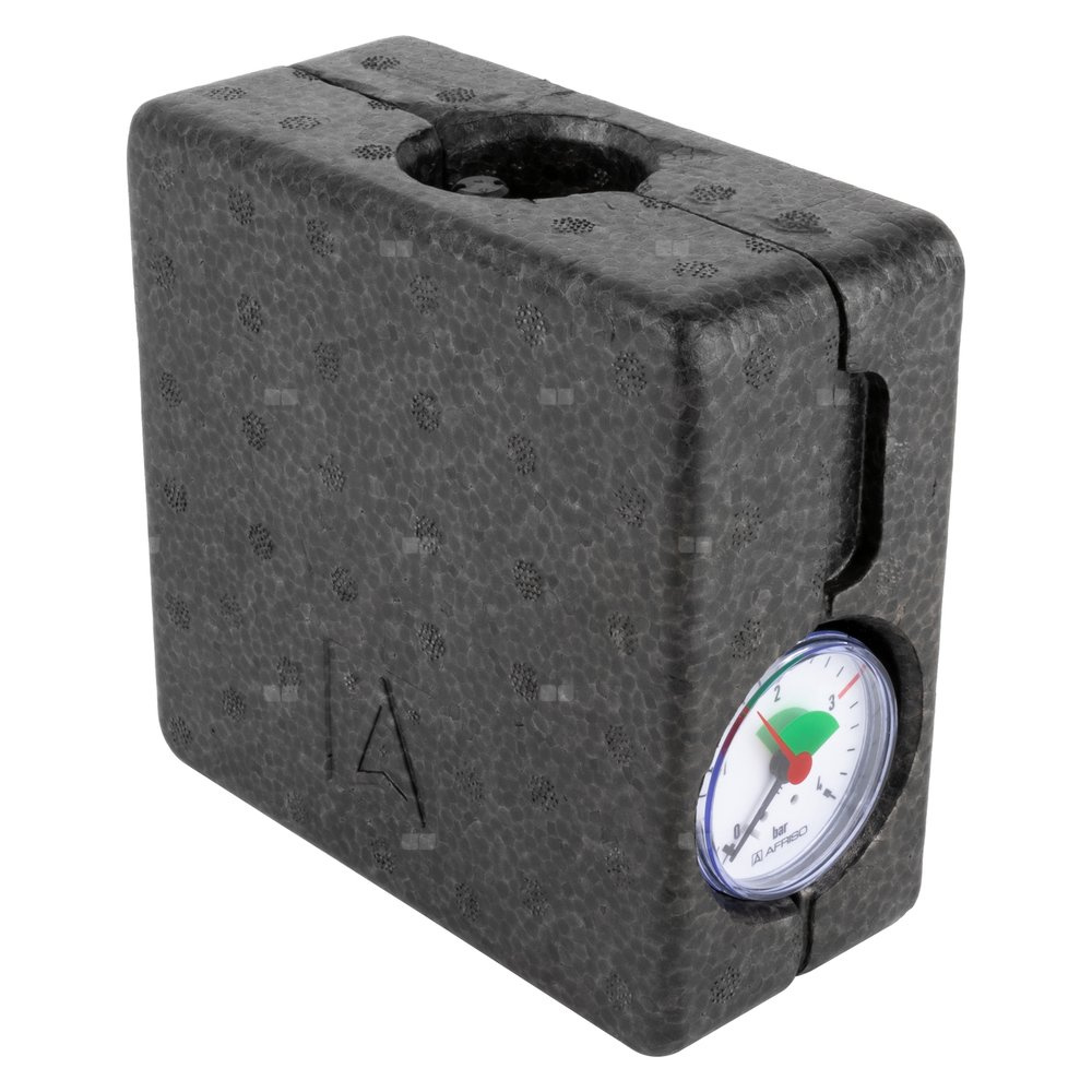 Manometr i odpowietrznik wyposażone w zawory montażowe.