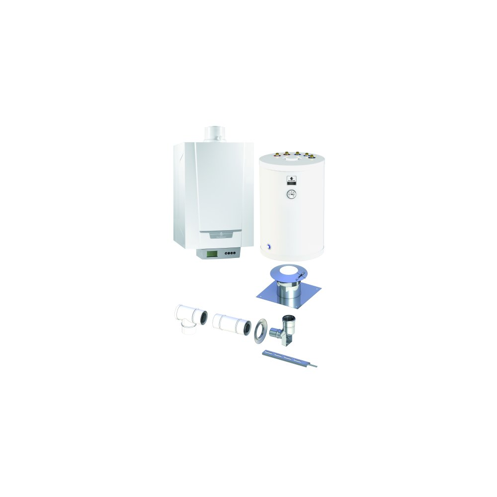 Pakiet - Kocioł gazowy jednofunkcyjny DE DIETRICH MCR3 Evo 24T kondensacyjny wiszący 6.1 - 24.8 kW + Zestaw powietrzno-spalinowy szachtowy + Zasobnik c.w.uSRK150MG