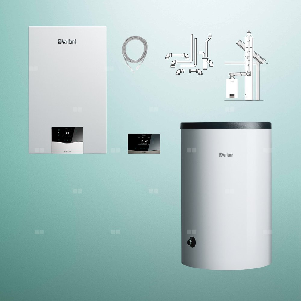 Pakiet - Kocioł gazowy jednofunkcyjny VAILLANT ecoTEC plus VC 20CS/1-5 kondensacyjny wiszący 2.8 - 21 kW + RegulatorsensoCOMFORT 720 + Zestaw powietrzno-spalinowy szachtowy + Zasobnik c.w.uVIH R 200/6 B