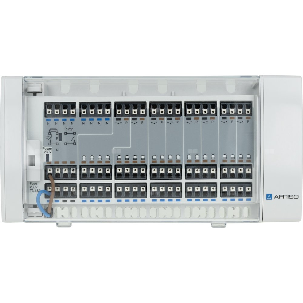 - Montowana na szynie DIN w pobliżu rozdzielacza.