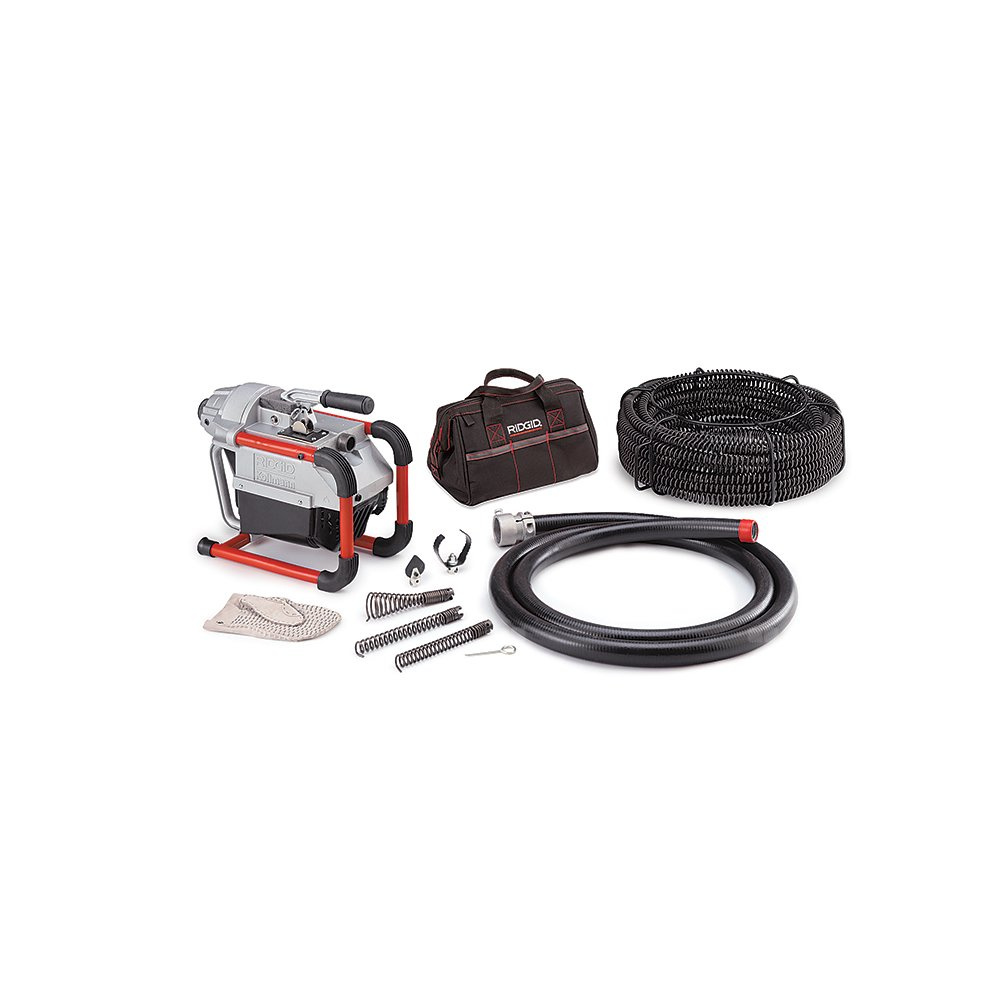 Maszyna segmentowa K-60SP SE A30 z rękawicą RIDGID do czyszczenia odpływów, tylnym wężem prowadzącym A–60–12, zestawem narzędzi–61, zestawem sprężyny A–62, zestawem sprężyny A–30