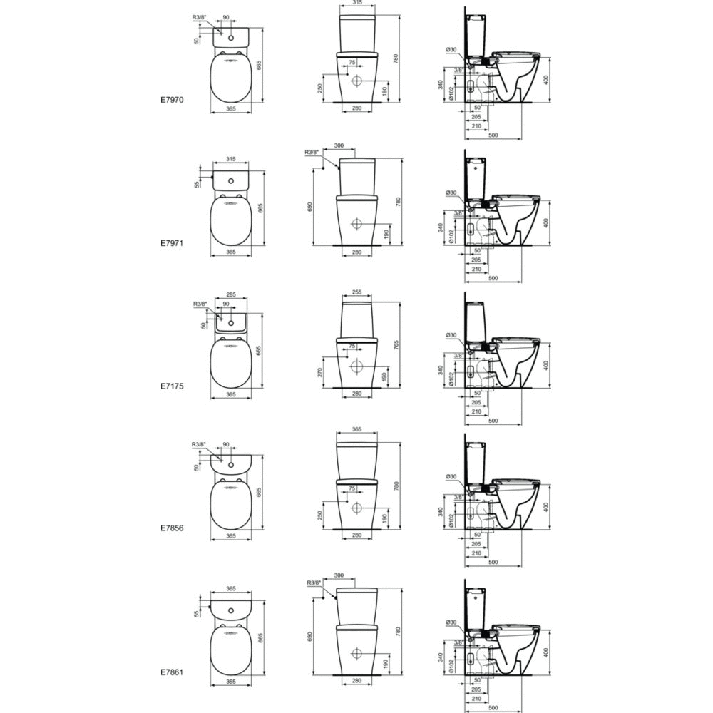 - Odległość pozioma otworów montażowych deski sedesowej (mm): 155