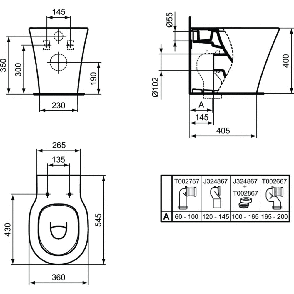 Miska przylegająca do ściany. Odpływ uniwersalny, poziomy. Zestaw montażowy TT0293851 w komplecie, system montażu, bez widocznych otworów przyłączeniowych. Indywidulane opakowanie. EN 997. Konieczne dodatkowe elementy: Deska sedesowa typu Thin, z duroplastu (E036501). Deska sedesowa typu Thin, z duroplastu, wolnoopadająca (E036601). Zalecane dodatkowe elementy: Kolano przyłączeniowe 90°, poziome, 60-150 mm (T002767). Kolano przyłączeniowe 90°, poziome, 175-205 mm (J324867). Kolano przyłączeniowe 90°, poziome, 165-210 mm (T002667). Element do odpływu +20 /-20 (do ew. zastosowania z kolanem przyłączeniowym 90° J324867, do uzyskania odleglości 155-225 mm) (T002867). Ogranicznik przepływ wodyu wody (do zastosowania w przypadku spłukiwania od 6 do 9 l) (WW965956).