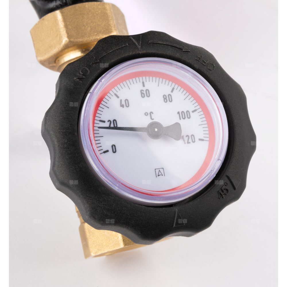 Termometr wbudowany pokrętło zaworu odcinającego kontroluje temperaturę medium.