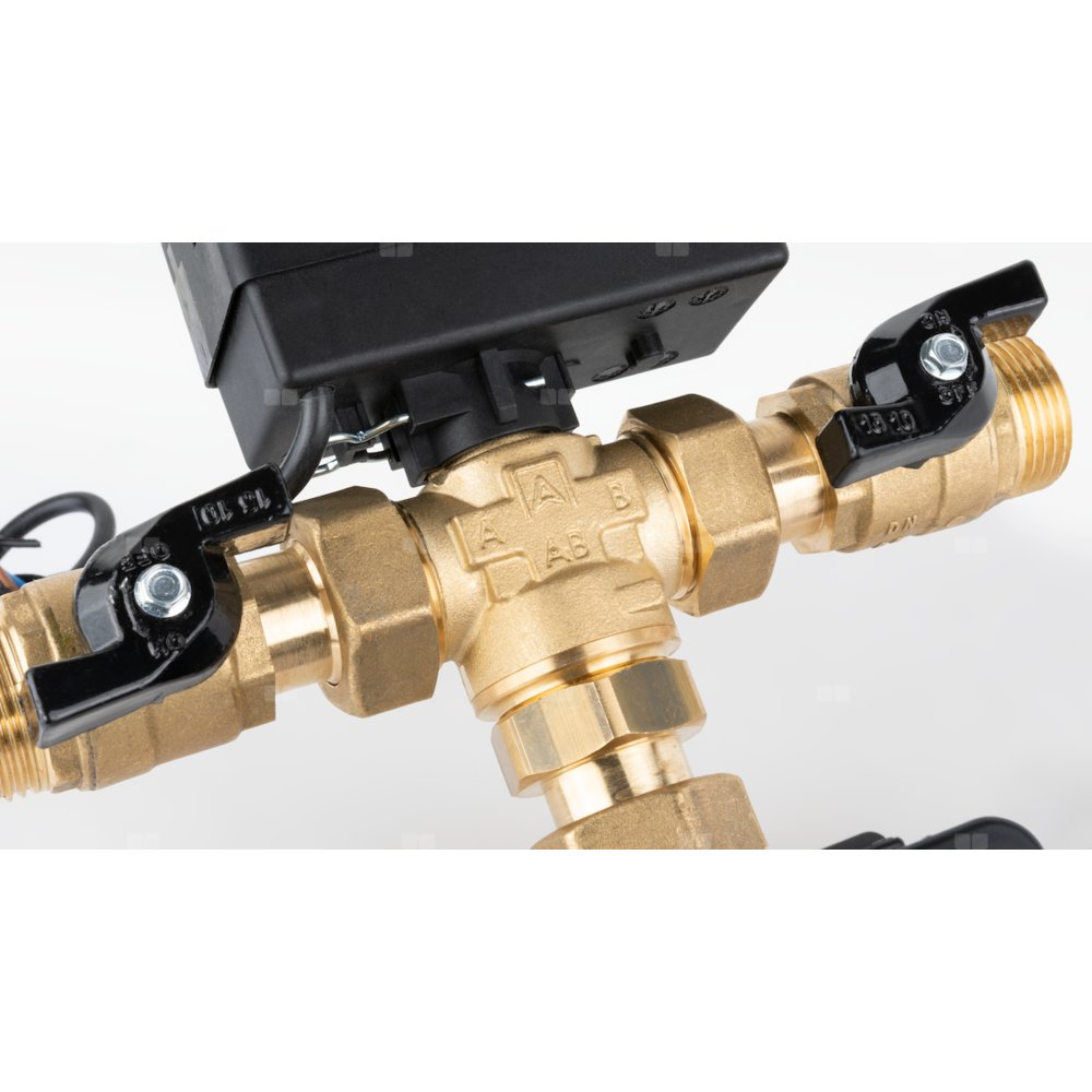 Montowany między źródłem ciepła a dwoma częściami instalacji np.: zasobnikiem ciepłej wody użytkowej oraz buforem ciepła.