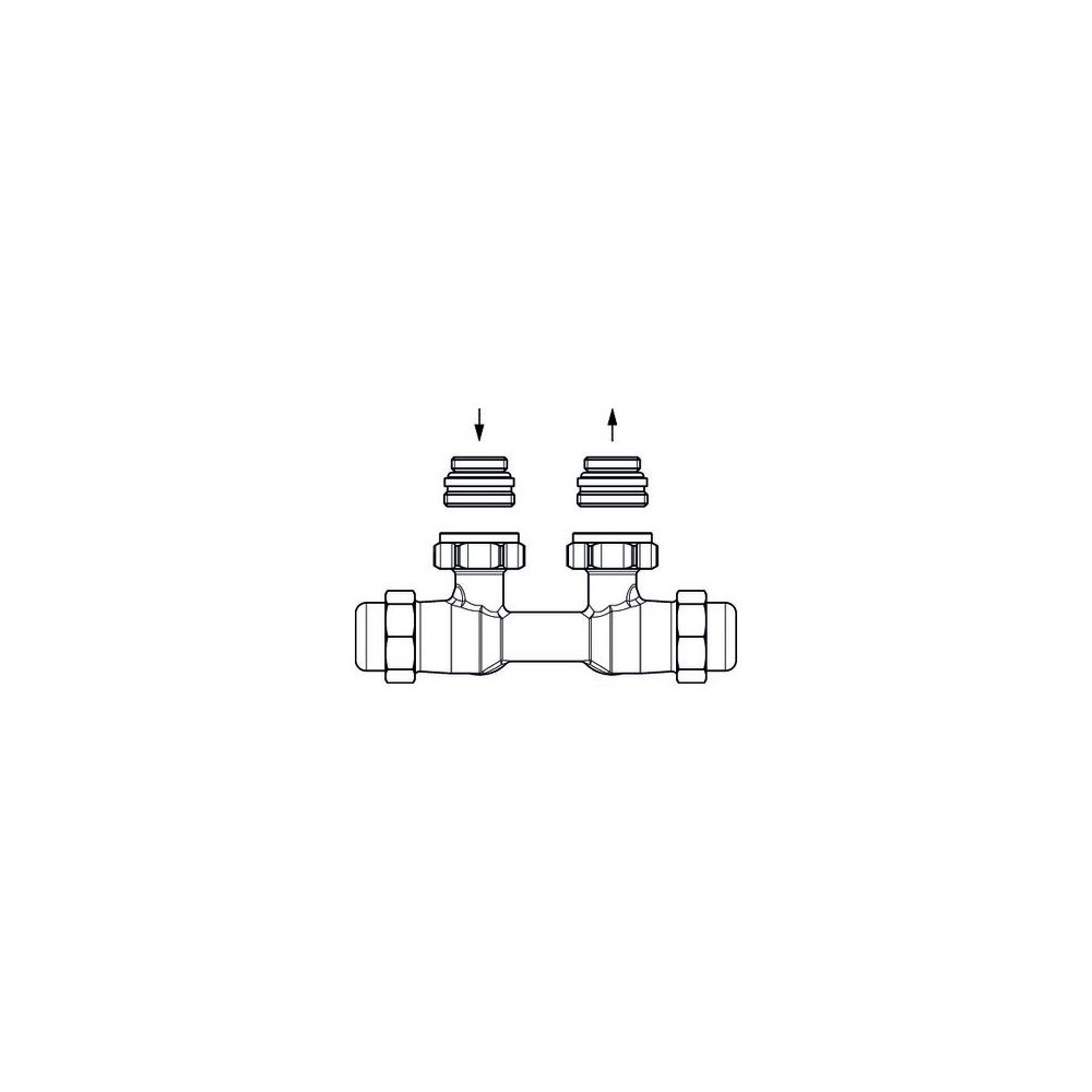 Multilex FQ, podwójne przyłącze grzejnikowe z funkcją automatycznego równoważenia, G 1/2 GZ x G 3/4 GZ, kątowe, lewostronne