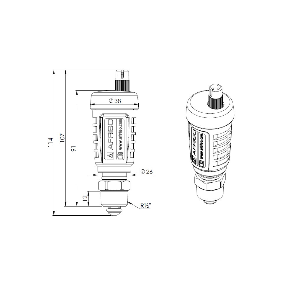 Zawór stopowy umożliwia łatwą wymianę i konserwację odpowietrznika bez konieczności spuszczania medium z instalacji.