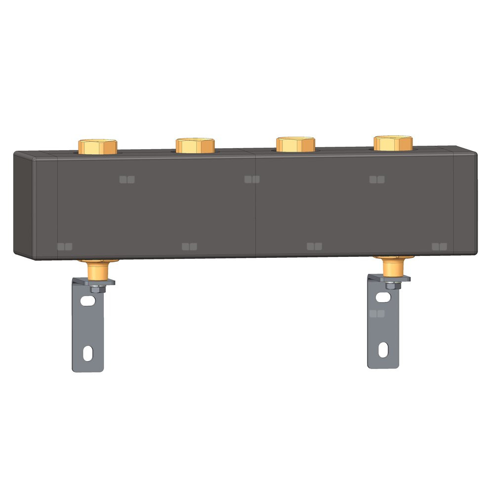Rozdzielacz HERZ do grup pompowych ze stali, do podłączenia 3 grup pompowych PUMPFIX, z elementami mocującymi i izolacją w zestawie.