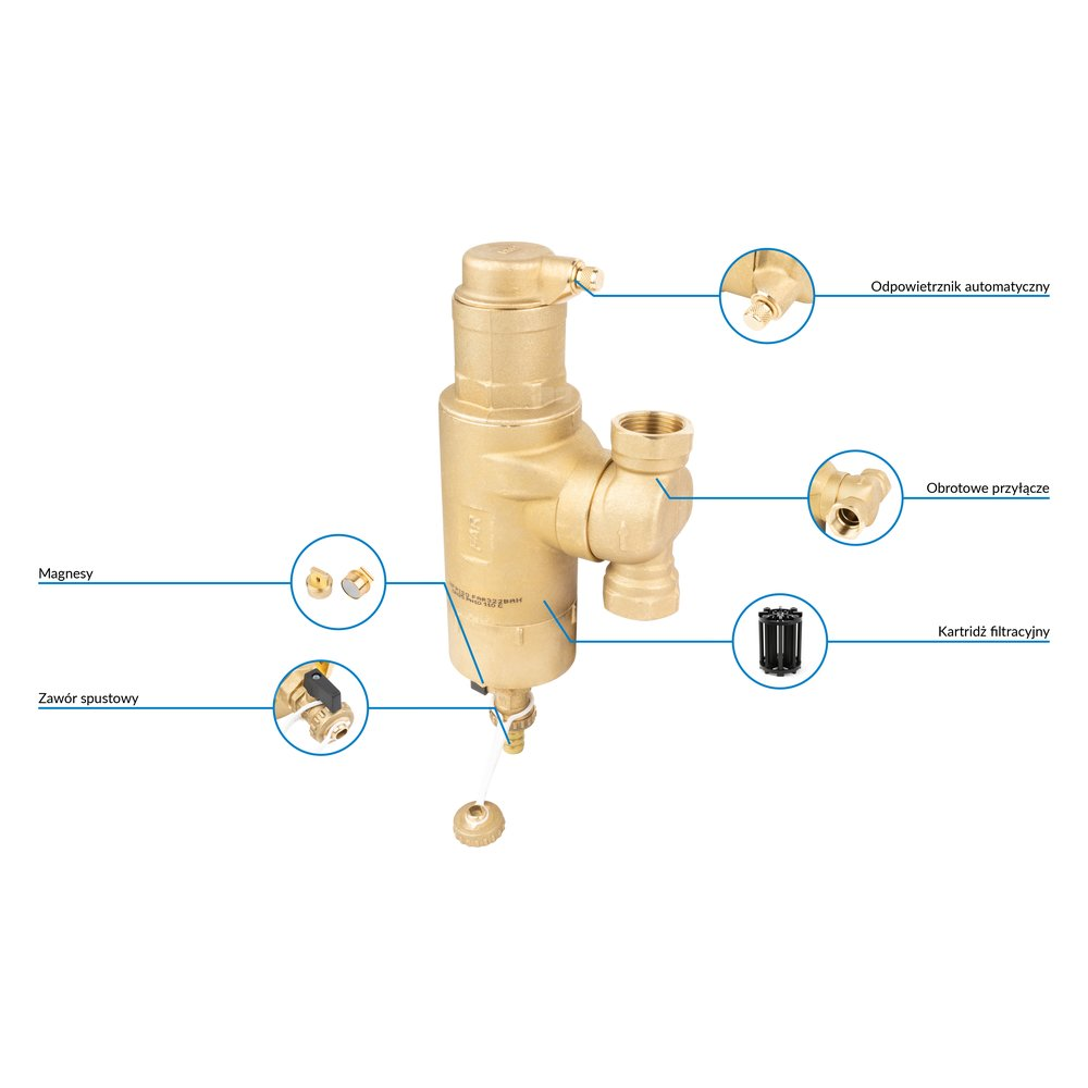 Zawór spustowy usuwa zanieczyszczenia wytrącone z medium.