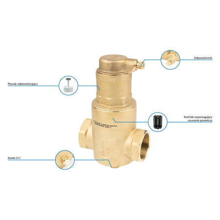 Korek można zastąpić zaworem spustowym, żeby usunąć zanieczyszczenia.
