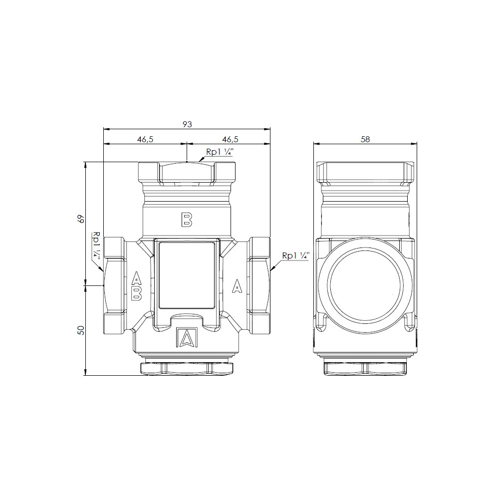 - Wymienny element termostatyczny umieszczony w zaworze ustawiony fabrycznie na stałą temperaturę 50°C.