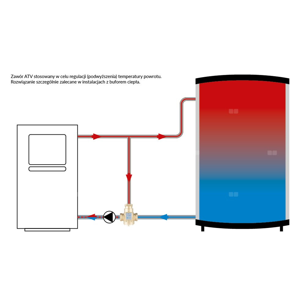 - Stosowany w instalacjach grzewczych z kotłami stałopalnymi, zalecany szczególnie do instalacji z buforami ciepła.