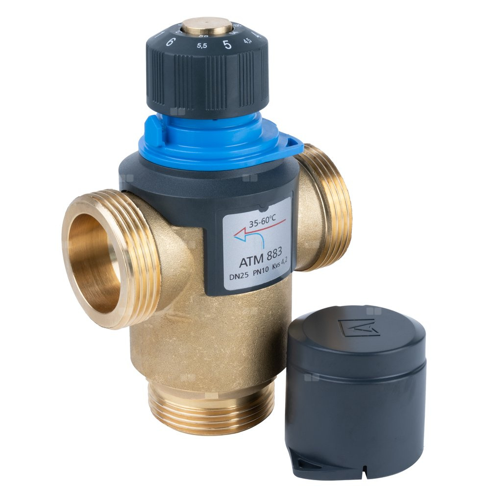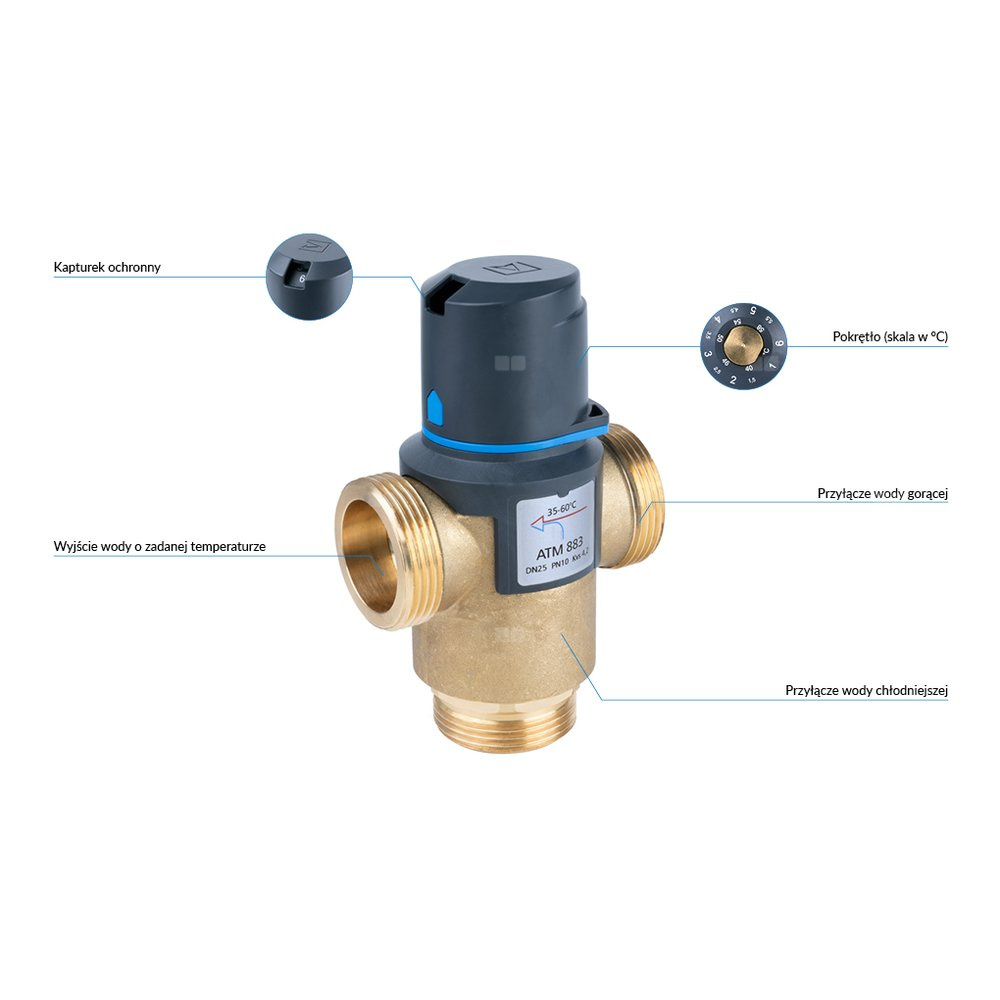 Zawór regulacyjny termostatyczny do wody ciepłej AFRISO ATM 883 mosiądz GZ 1 1/4'', DN 25, zakres temp. 35-60'C, Kvs 4.2 m3/h, maksymalna temperatura 110'C, maksymane ciśnienie 10 bar