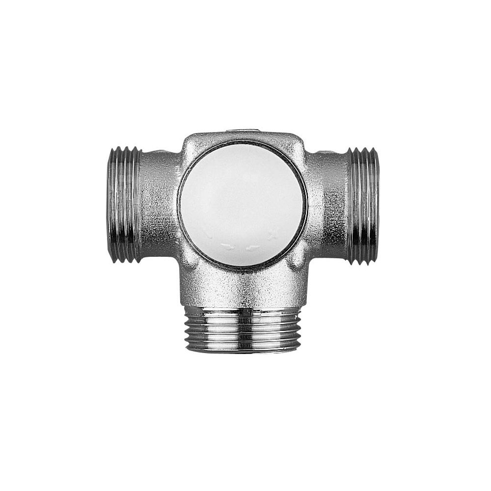 CALI S-TS-E-3-D - zawór trójdrogowy zawór z prawej strony grzejnika, z uszczelnieniem płaskim, bez przyłączy, z kołpakiem gwintowanym. Przyłącza do rur oddzielnie do zamówienia.