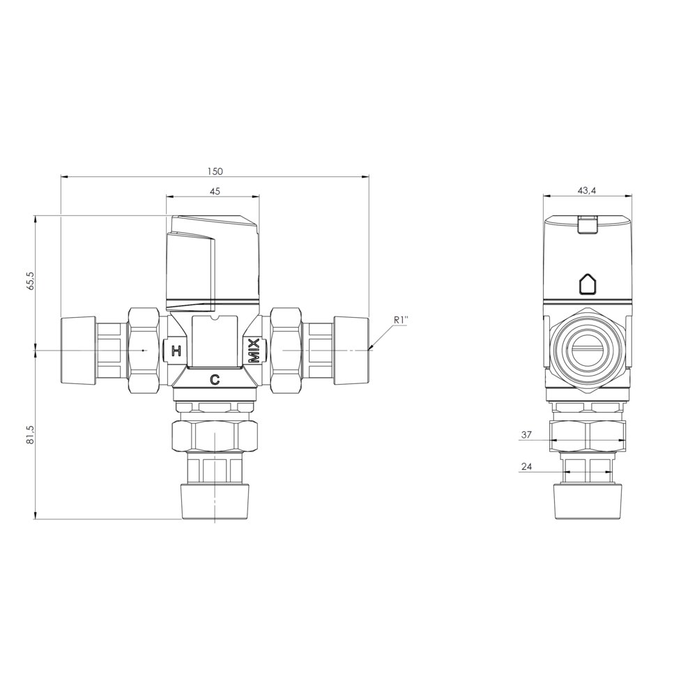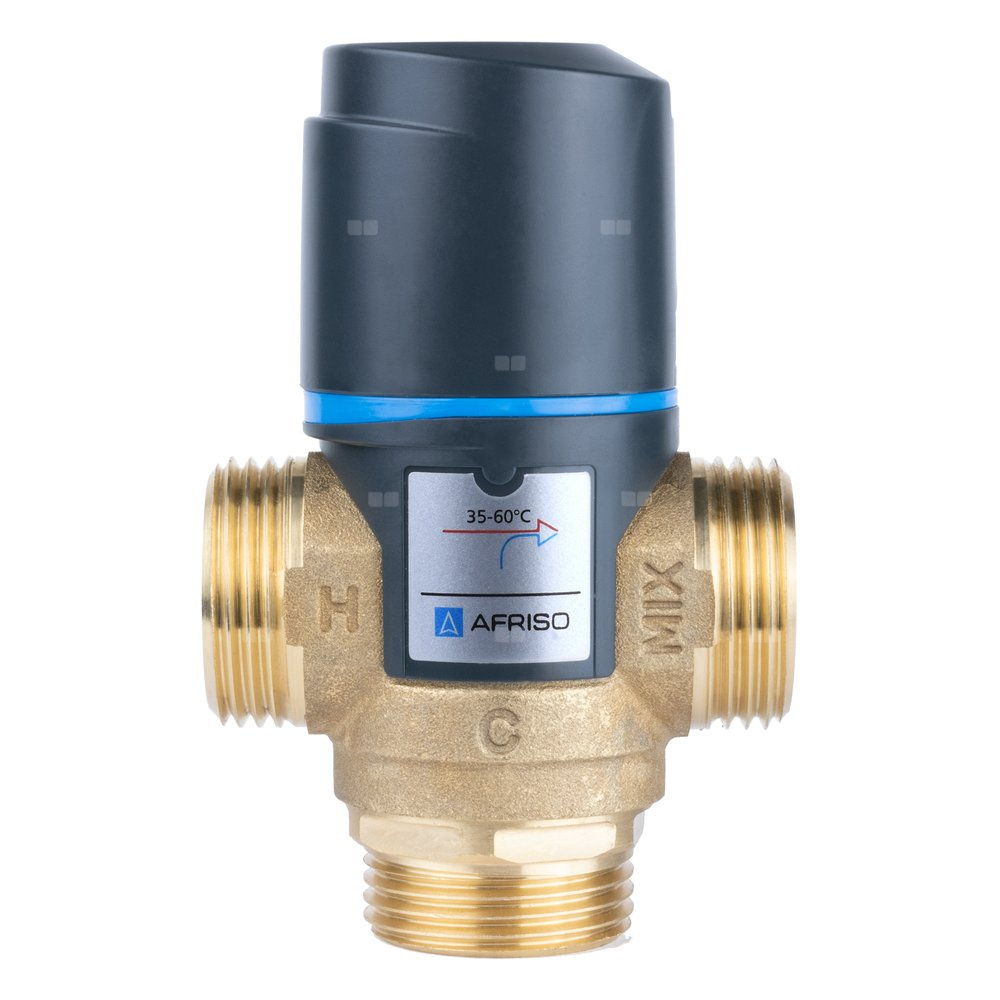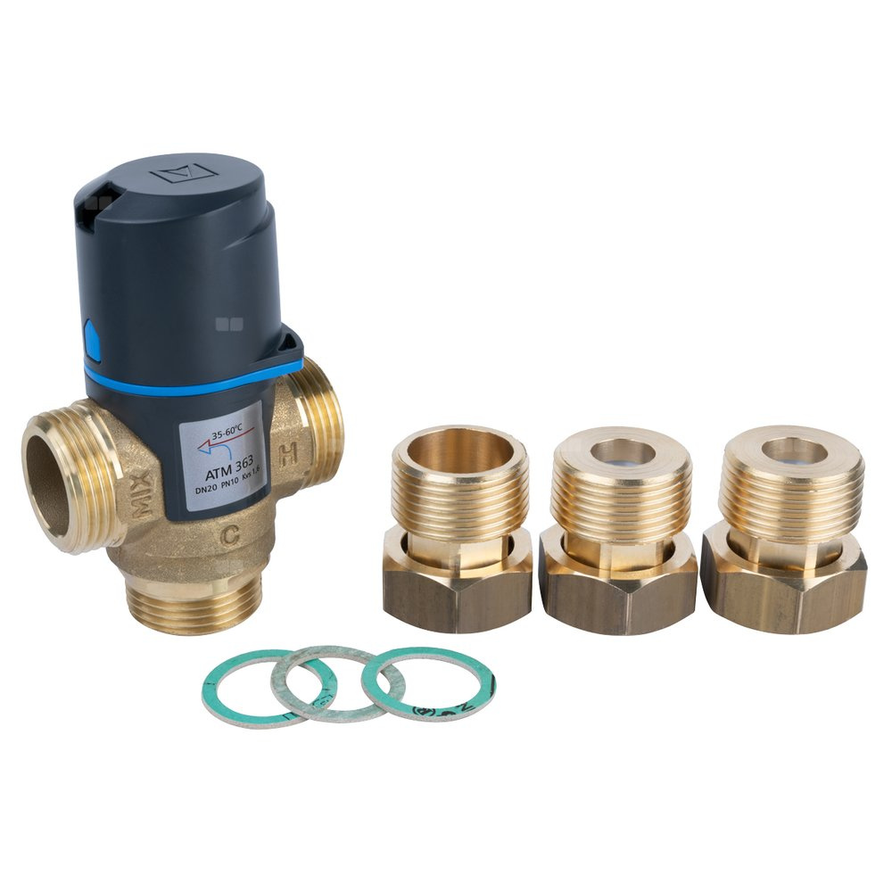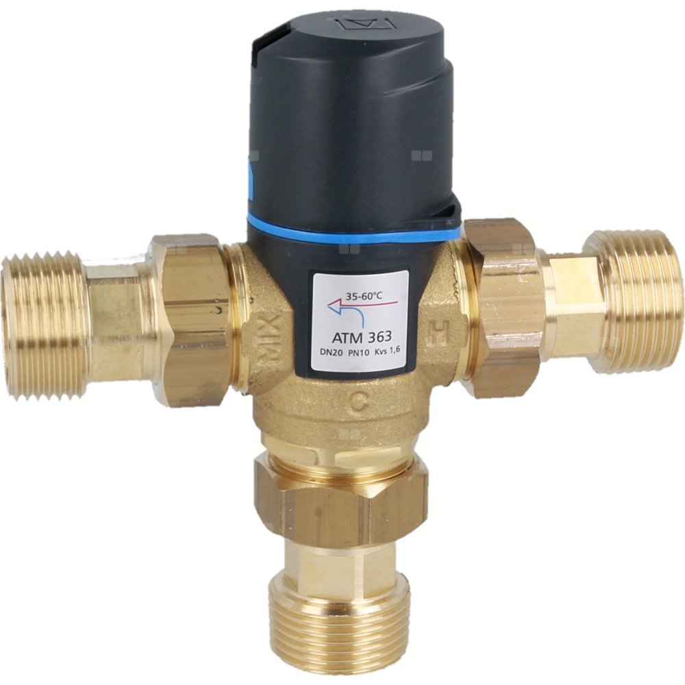 Zawór regulacyjny termostatyczny do wody ciepłej AFRISO ATM 363 ze śrubunkami mosiądz GZ 1'', DN 20, zakres temp. 35-60'C, Kvs 1.6 m3/h, maksymalna temperatura 90'C, maksymane ciśnienie 10 bar