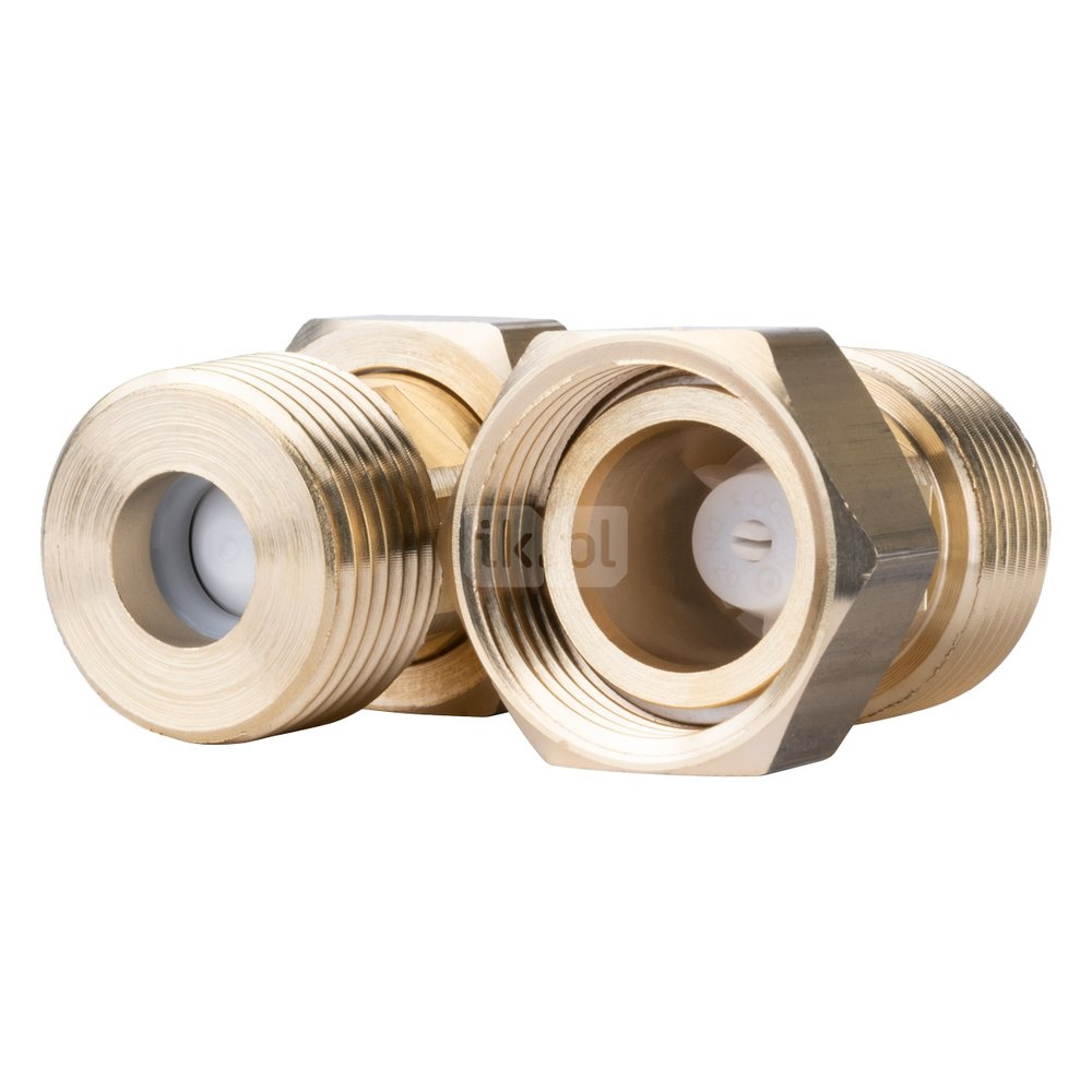 W zestawie znajduje się komplet śrubunków z wbudowanymi zaworami zwrotnymi, który ułatwia montaż i demontaż zaworu ATM oraz zapobiega przepływom zwrotnym w instalacji.