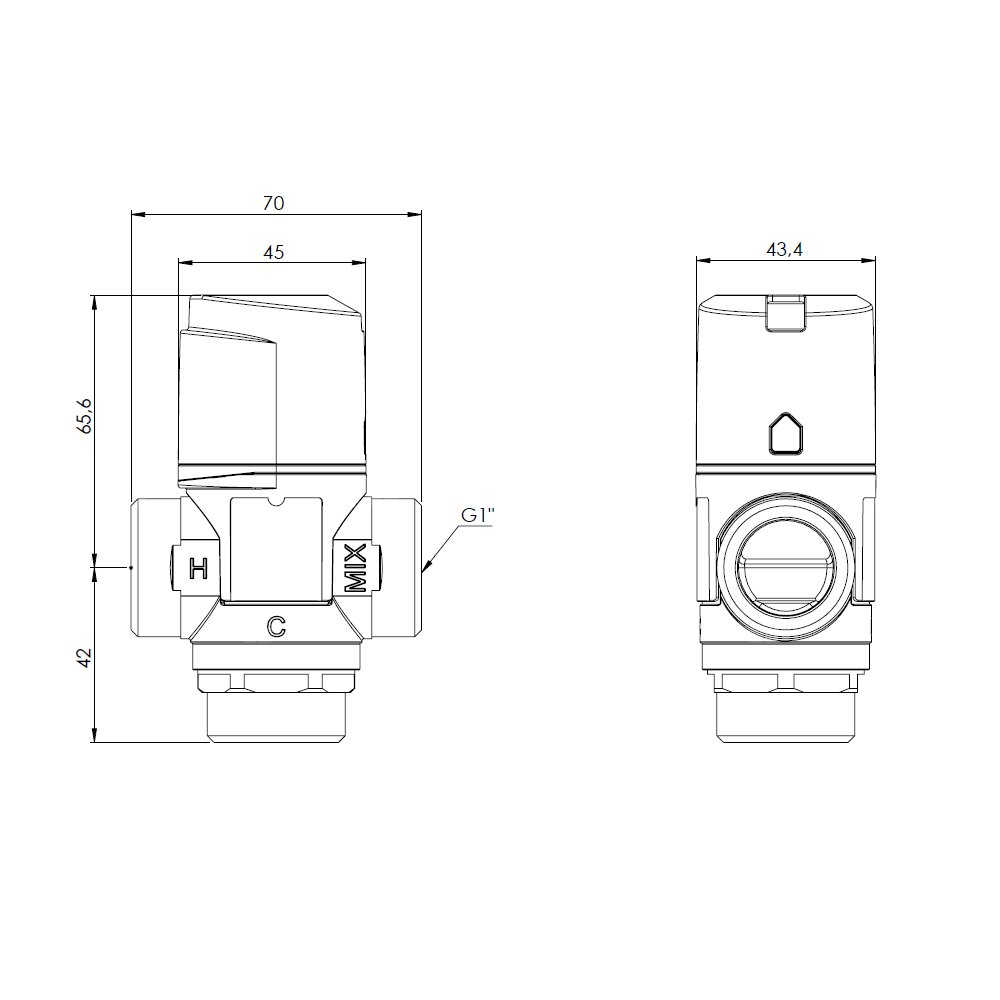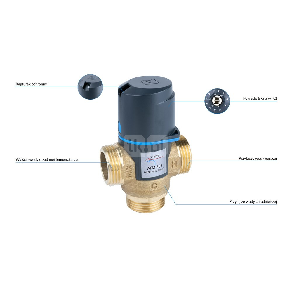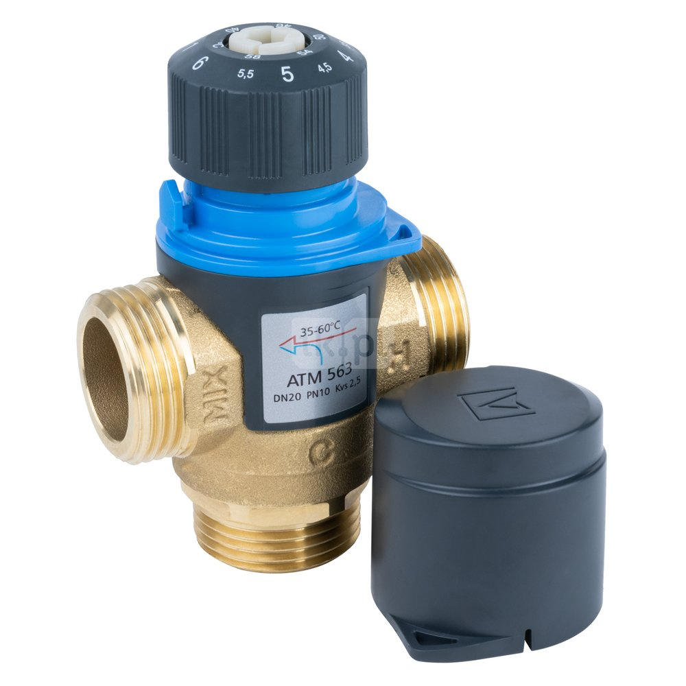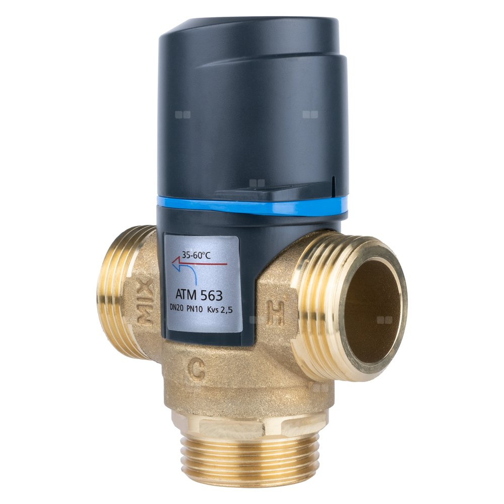 Zawór regulacyjny termostatyczny do wody ciepłej AFRISO ATM 563 mosiądz GZ 1'', DN 20, zakres temp. 35-60'C, Kvs 2.5 m3/h, maksymalna temperatura 90'C, maksymane ciśnienie 10 bar
