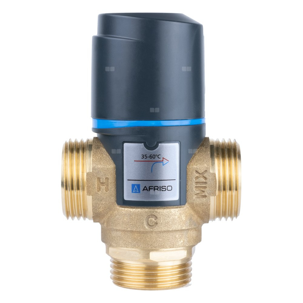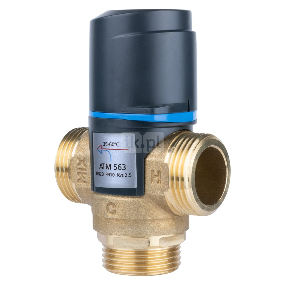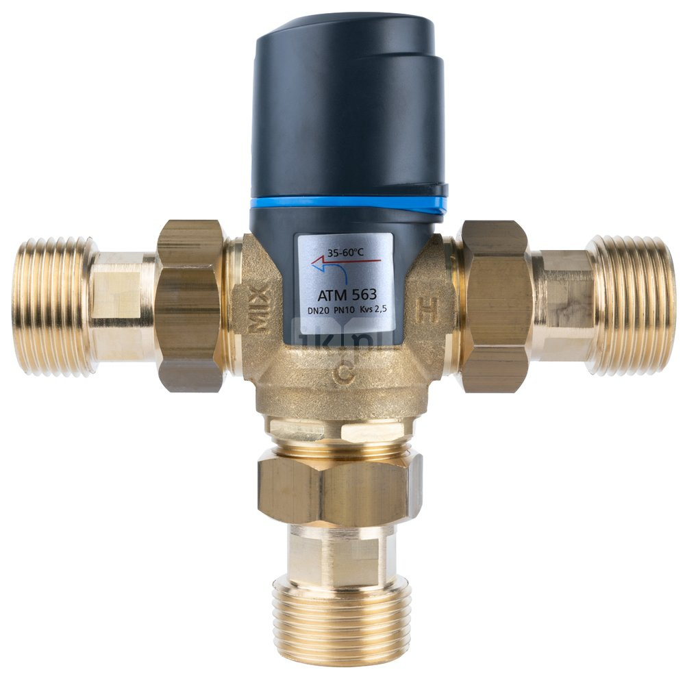Zawór regulacyjny termostatyczny do wody ciepłej AFRISO ATM 563 ze śrubunkami mosiądz GZ 1'', DN 20, zakres temp. 35-60'C, Kvs 2.5 m3/h, maksymalna temperatura 90'C, maksymane ciśnienie 10 bar