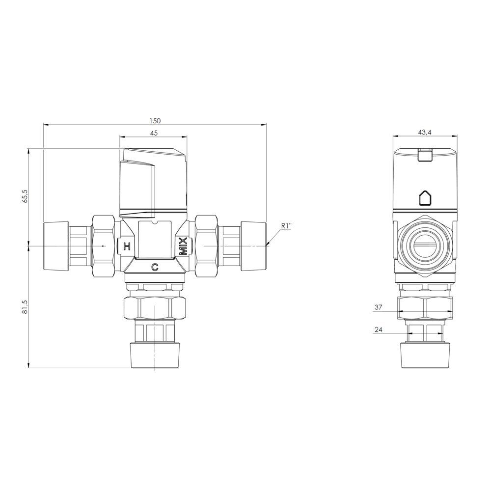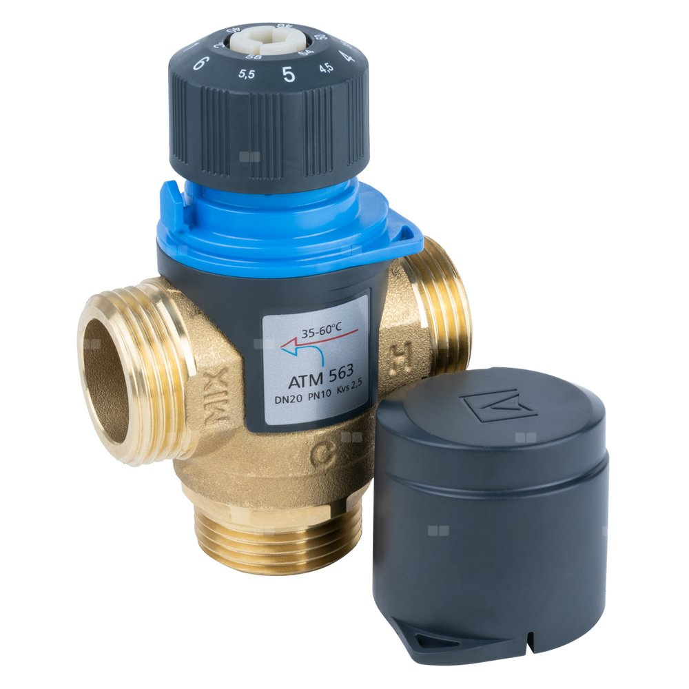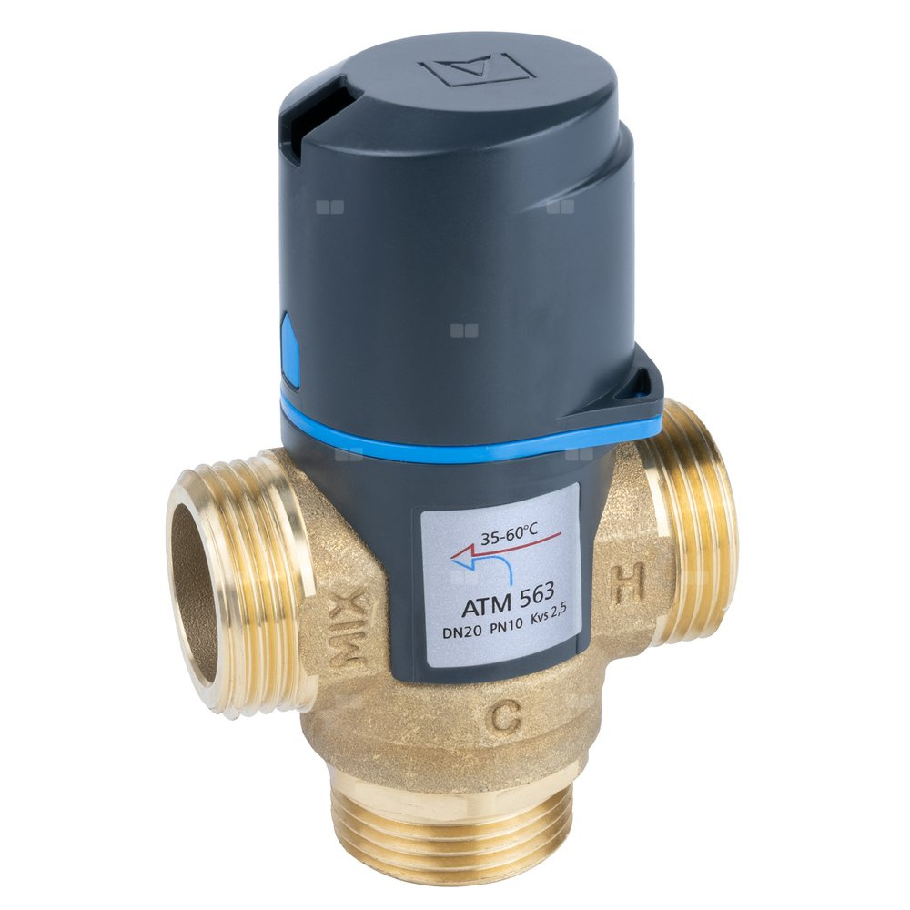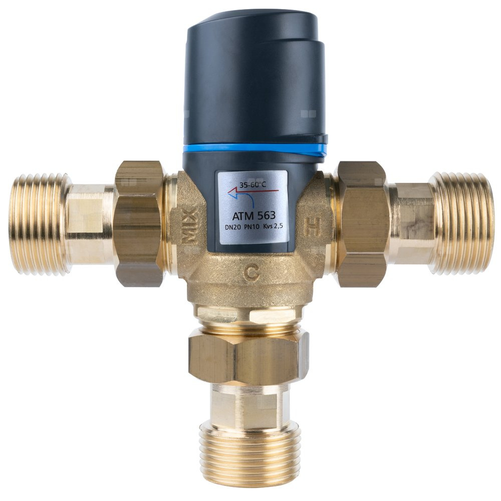 Zawór regulacyjny termostatyczny do wody ciepłej AFRISO ATM 563 ze śrubunkami mosiądz GZ 1'', DN 20, zakres temp. 35-60'C, Kvs 2.5 m3/h, maksymalna temperatura 90'C, maksymane ciśnienie 10 bar