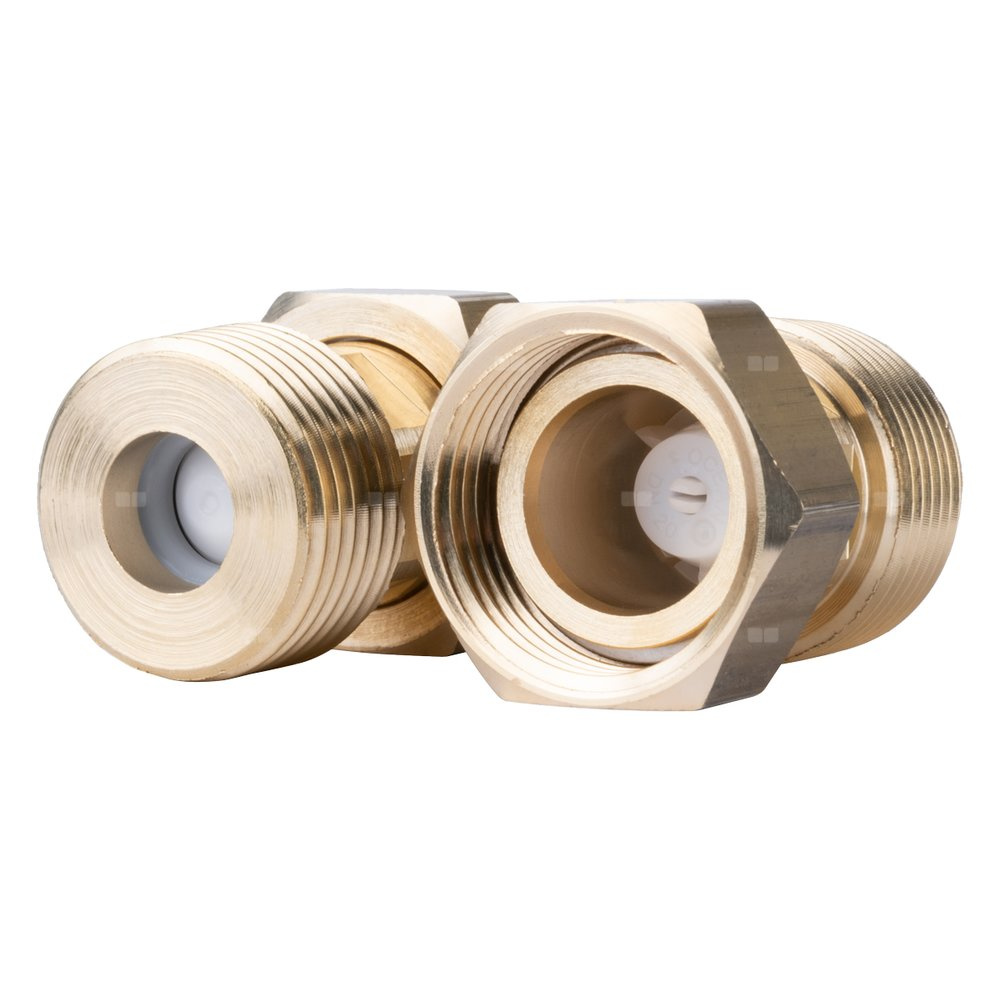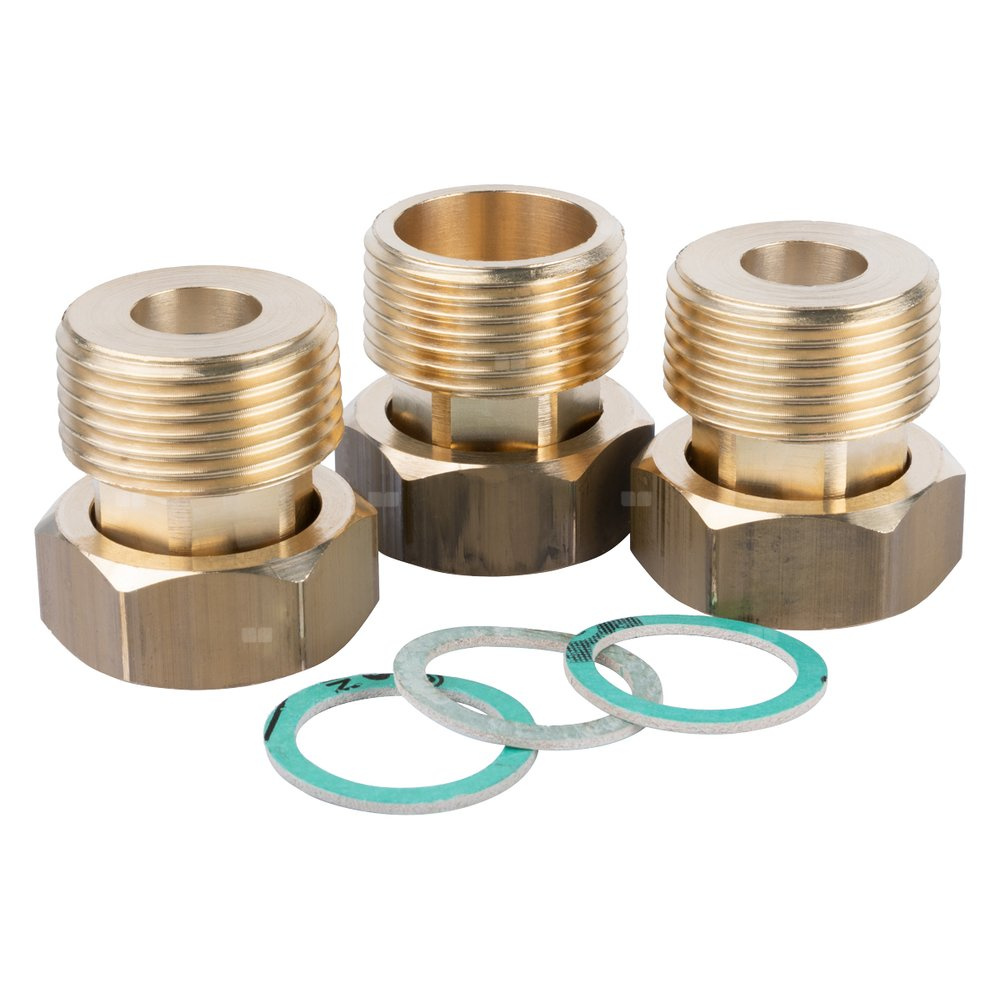 W zestawie znajduje się komplet śrubunków z wbudowanymi zaworami zwrotnymi, który ułatwia montaż i demontaż zaworu ATM oraz zapobiega przepływom zwrotnym w instalacji.