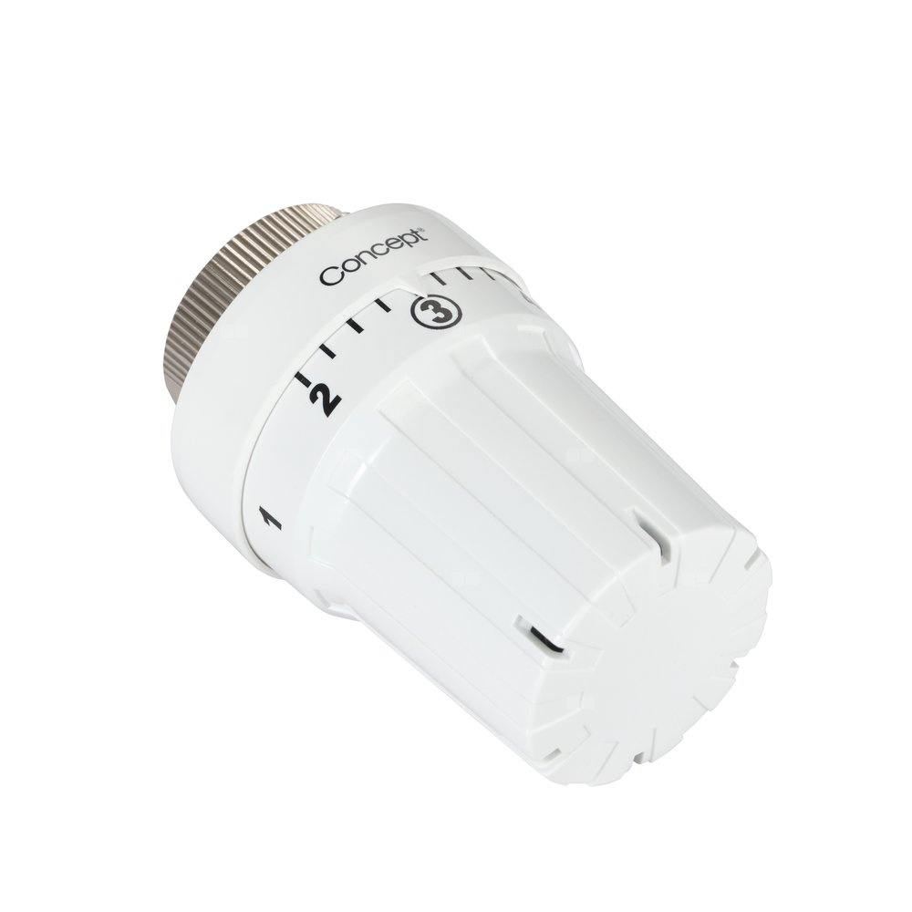 Głowica termostatyczna z przyłączem gwintowanym M30 x 1,5, z zabezpieczeniem przed zamarzaniem i ukrytą blokadą nastawy. Zakres regulacji temperatury 8-28°C. Dostępna w kolorach: biały i chrom.