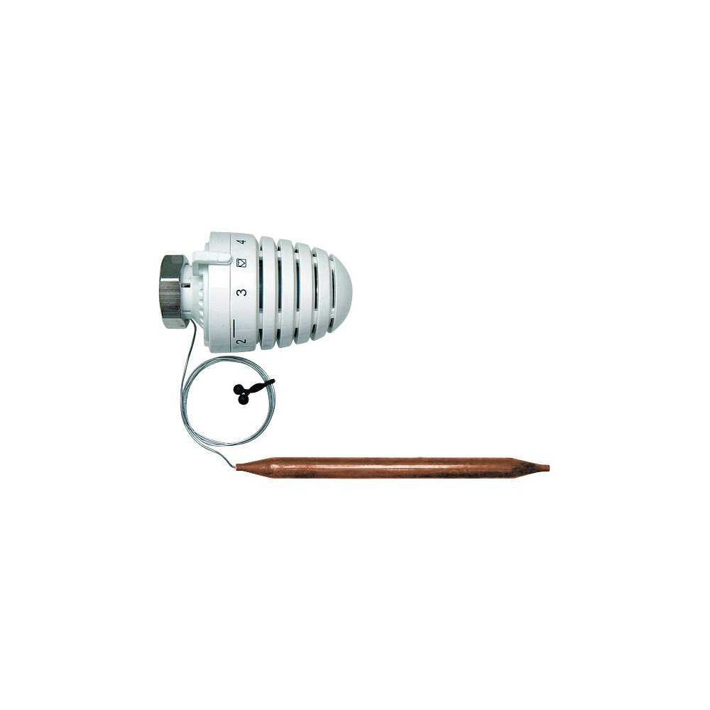 Głowica termostatyczna HERZ-Design "H" z czujnikiem powierzchniowym składająca się z termostatu, kapilary i czujnika powierzchniowego. Zakres nastaw 20 - 50 °C. Długość kapilary 2 m.
