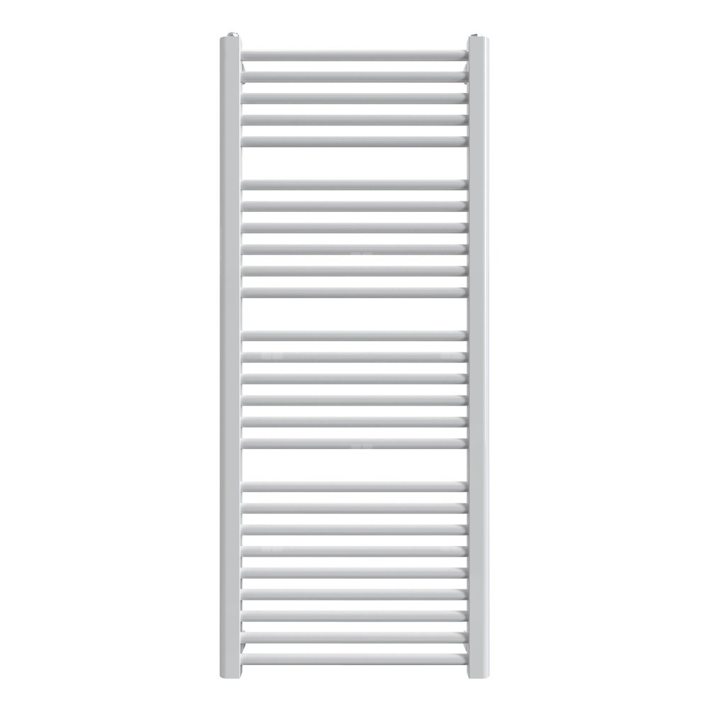 Grzejnik łazienkowy w kolorze białym. Typ: GRN - grzejnik pionowy łazienkowy. Materiał: stal niskowęglowa niestopowa. Konstrukcja: kolektor profil "D" 40 x 30, rury DN 20. Wysokość: 620, 740, 940, 1180, 1340, 1500, 1700, 1820 mm, szerokość: 400, 500, 600 mm. Ciśnienie robocze do 1,0 MPa. Temp. pracy do 95°C. Wyposażenie standardowe: korek 1/2", odpowietrznik 1/2", zawieszenie grzejnikowe typ Z 13. Wykończenie powierzchni: kolor biały. Przyłącza 1/2" GW.