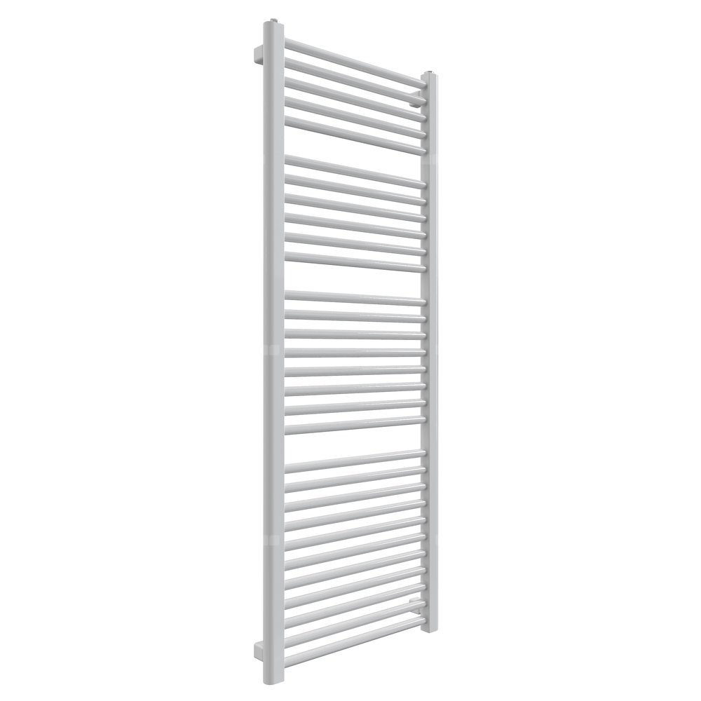 Grzejnik łazienkowy w kolorze białym. Typ: GRN - grzejnik pionowy łazienkowy. Materiał: stal niskowęglowa niestopowa. Konstrukcja: kolektor profil "D" 40 x 30, rury DN 20. Wysokość: 620, 740, 940, 1180, 1340, 1500, 1700, 1820 mm, szerokość: 400, 500, 600 mm. Ciśnienie robocze do 1,0 MPa. Temp. pracy do 95°C. Wyposażenie standardowe: korek 1/2", odpowietrznik 1/2", zawieszenie grzejnikowe typ Z 13. Wykończenie powierzchni: kolor biały. Przyłącza 1/2" GW.