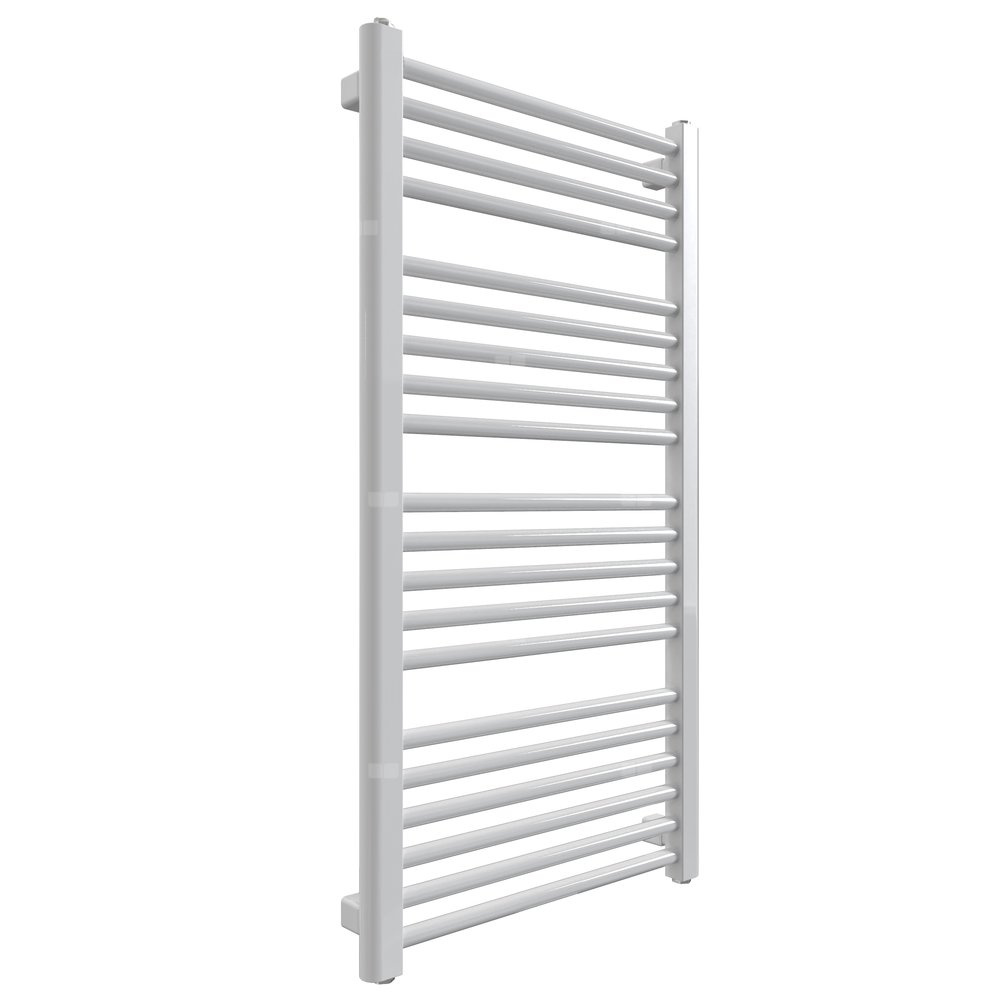 Grzejnik łazienkowy w kolorze białym. Typ: GRN - grzejnik pionowy łazienkowy. Materiał: stal niskowęglowa niestopowa. Konstrukcja: kolektor profil "D" 40 x 30, rury DN 20. Wysokość: 620, 740, 940, 1180, 1340, 1500, 1700, 1820 mm, szerokość: 400, 500, 600 mm. Ciśnienie robocze do 1,0 MPa. Temp. pracy do 95°C. Wyposażenie standardowe: korek 1/2", odpowietrznik 1/2", zawieszenie grzejnikowe typ Z 13. Wykończenie powierzchni: kolor biały. Przyłącza 1/2" GW.