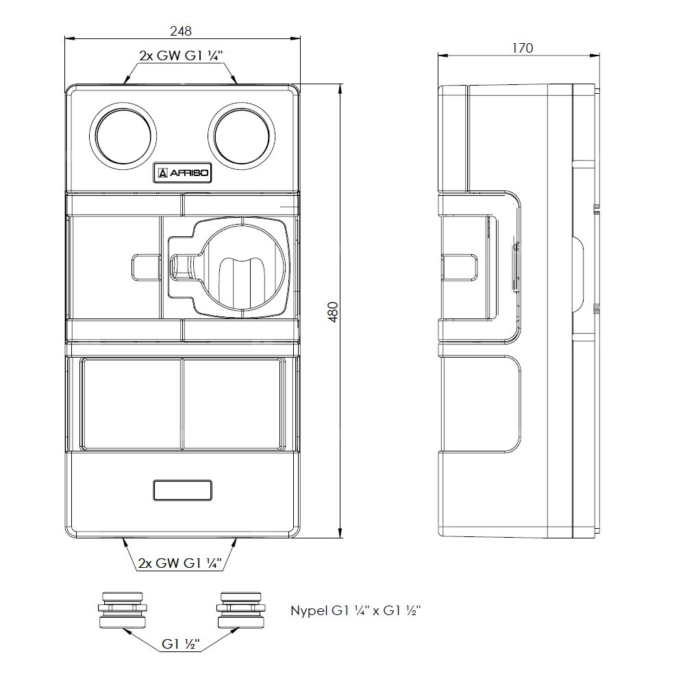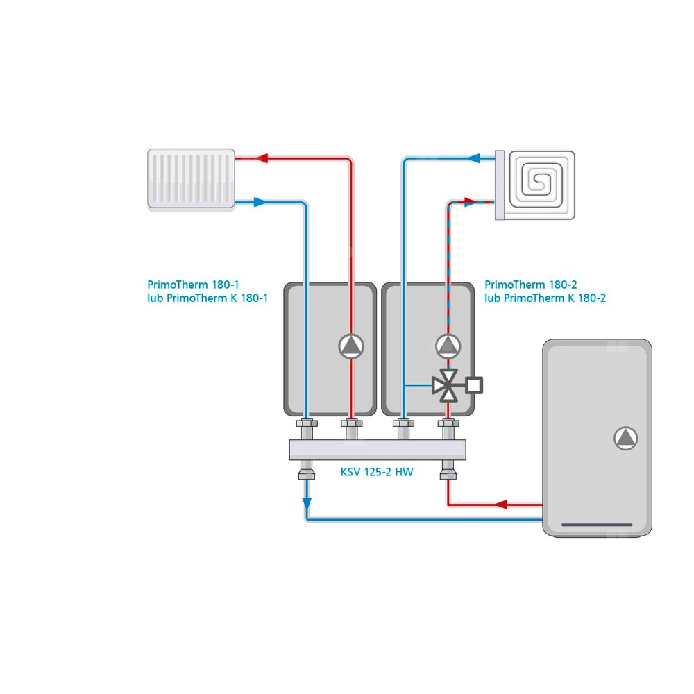 - Montowana na ścianie między źródłem ciepła/ chłodu a instalacją odbiorczą.