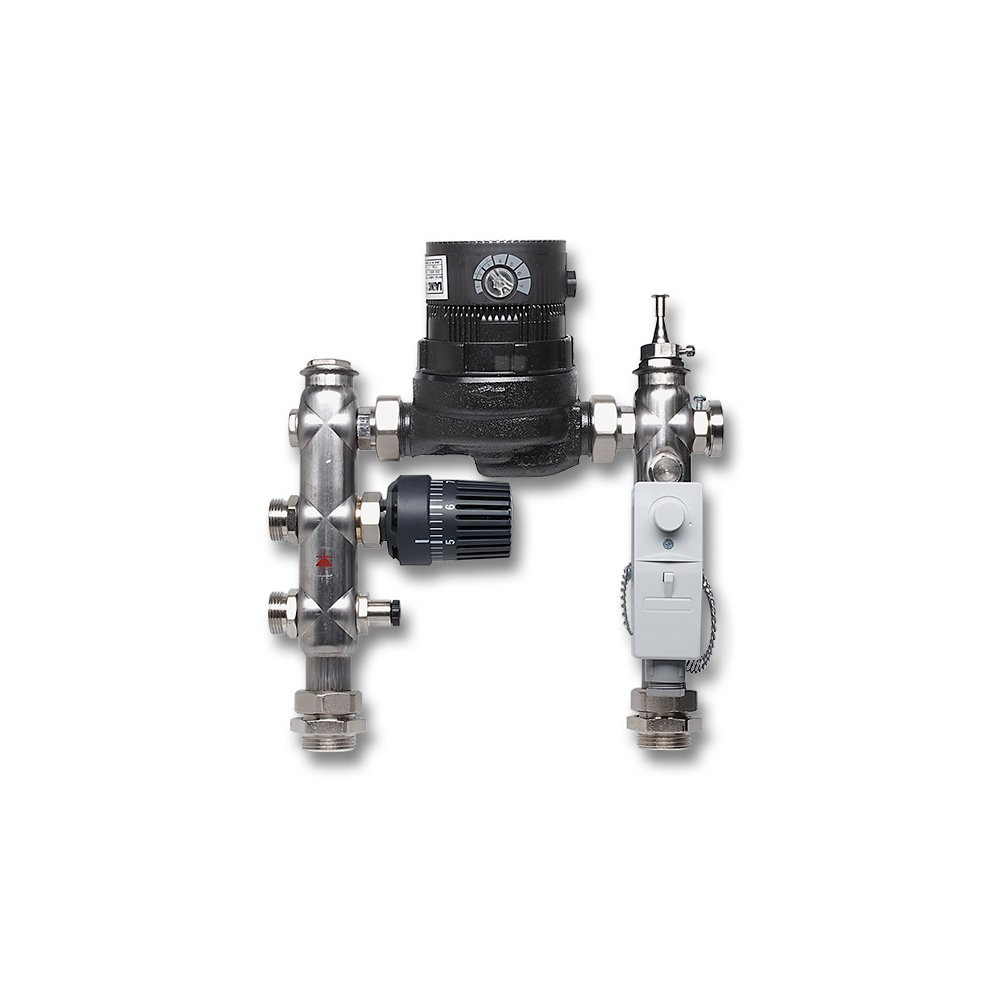 Zestaw pompowo-mieszający. Kontrola wartości zadanej w zakresie 20-50 st.C. Pompa obiegowa elektroniczna E4auto-130 mm, zawór z termostatyczny, odpowietrznik, zawór zwrotny zintegrowany