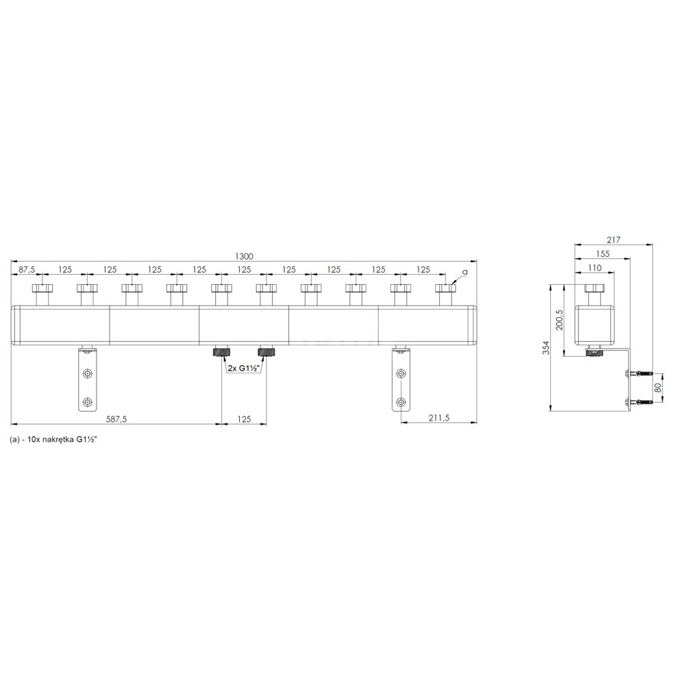 Rozdzielacz do instalacji c.o. AFRISO KSV 125-5 GZ 1 1/2'', 5-obieg. Nakrętka 1 1/2'', max. 70 kW