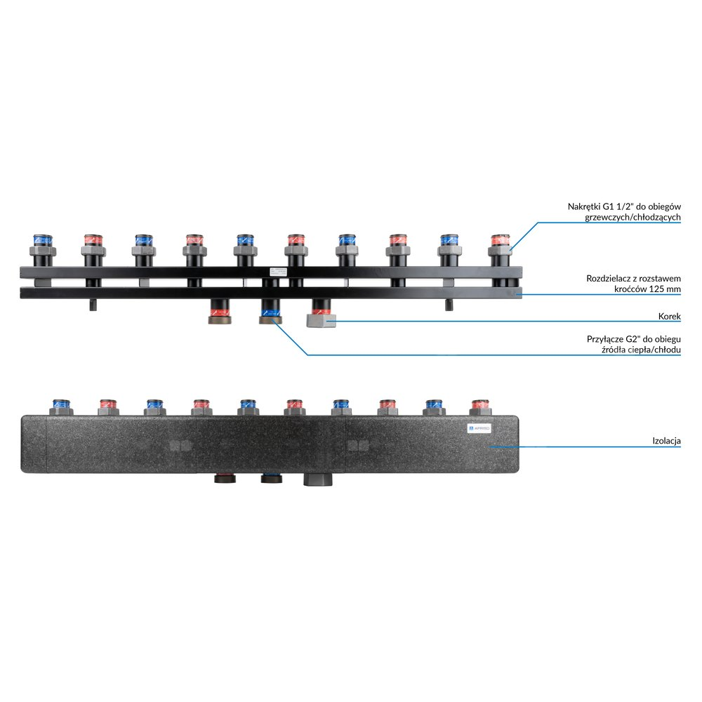 Przeznaczony do szybkiego i wygodnego podłączenia pięciu grup pompowych PrimoTherm do źródła ciepła/chłodu.