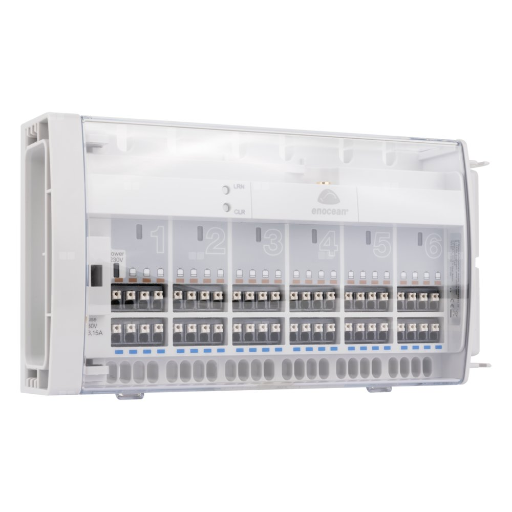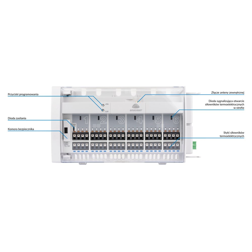 Pozwala sparować do 6 termostatów bezprzewodowych R FT / R FTF i podłączyć do 24 siłowników termoelektrycznych (np. TSA 01).