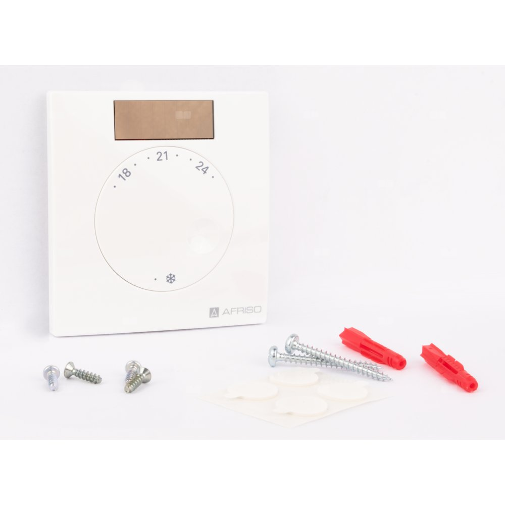Zasilanie ogniwem fotowoltaicznym (wbudowanym w termostat) albo baterią 3 V DC (brak w elementach dostawy).
