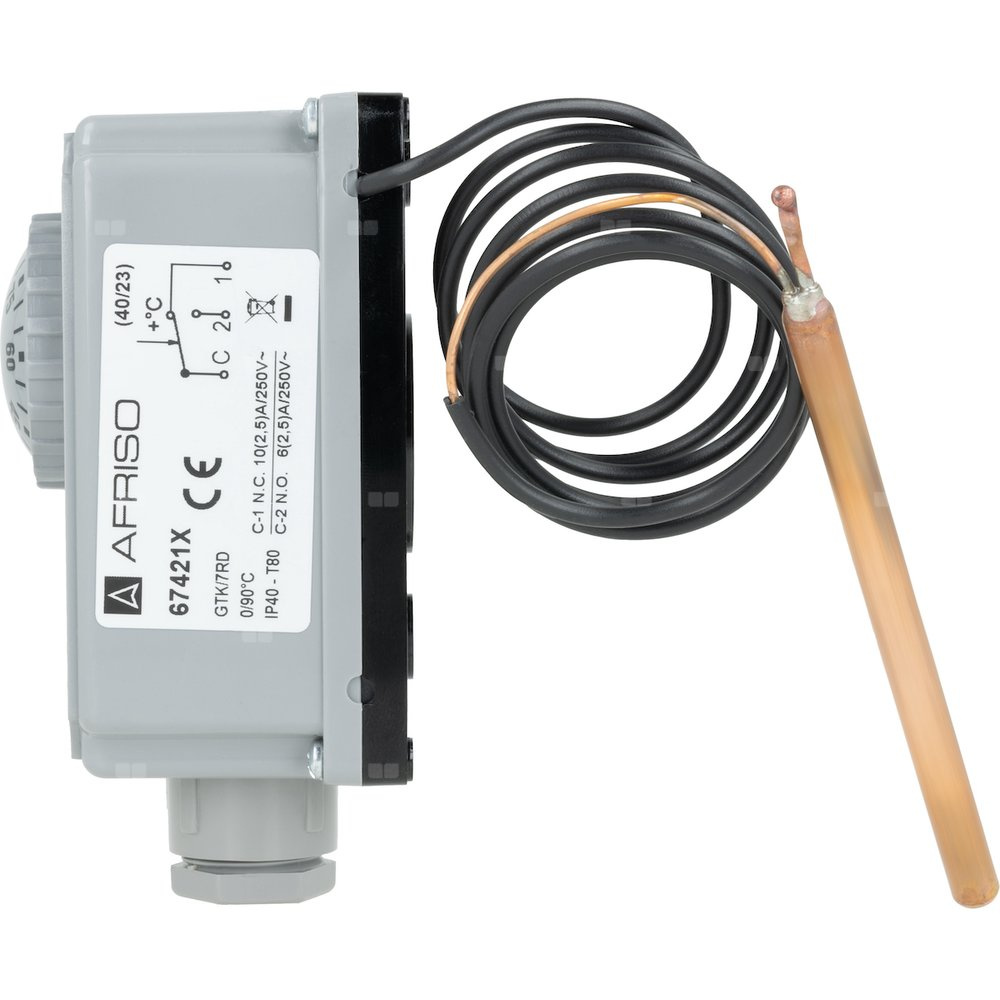 Wyposażony w kapilarę o długości 1000mm, co umożliwia montaż termostatu z dala od miejsca pomiaru.