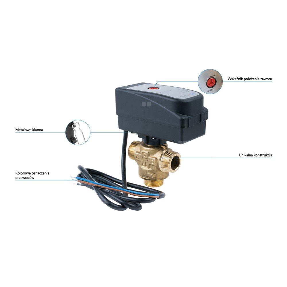 W połączeniu ze sterownikiem 2-punktowym (np. termostatem TC2) automatyzuje pracę instalacji.